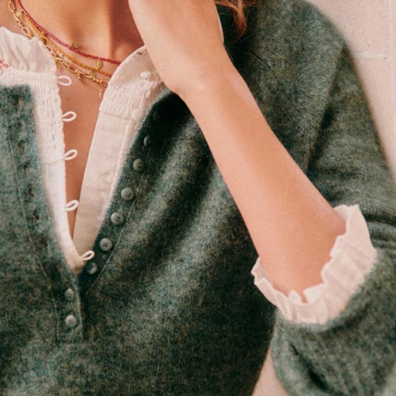 一枚で着るのはもちろん、ブラウスやシャツをレイヤードしても可愛いです。
