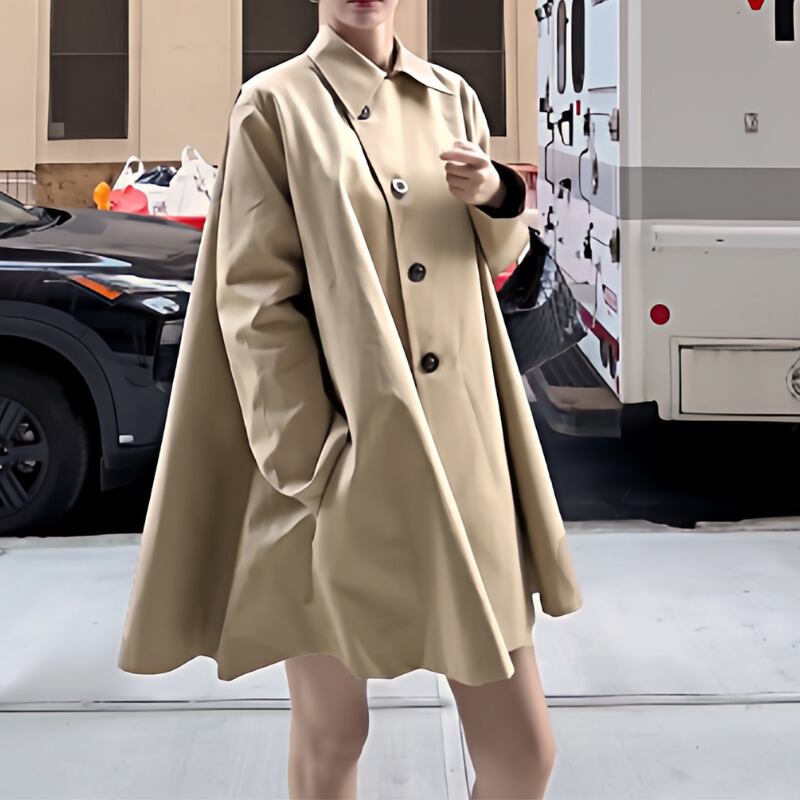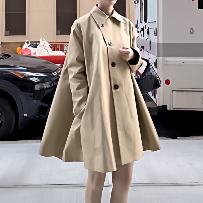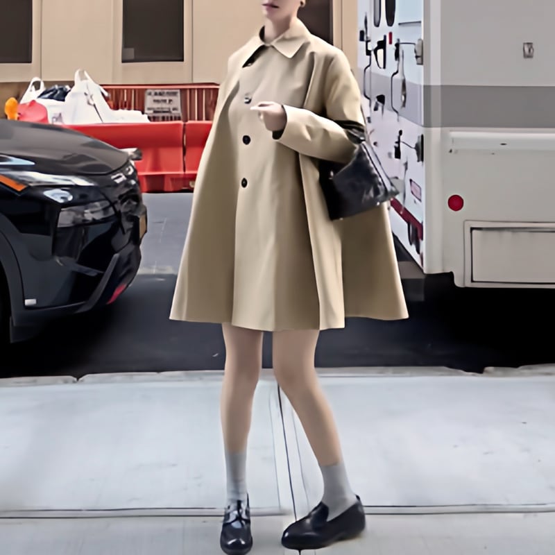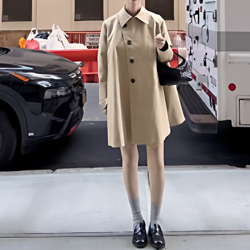 Aラインのシルエットを活かして、ワンピースのように着こなすのもおすすめです。