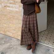 Pleated Checkered Long Skirt W00055