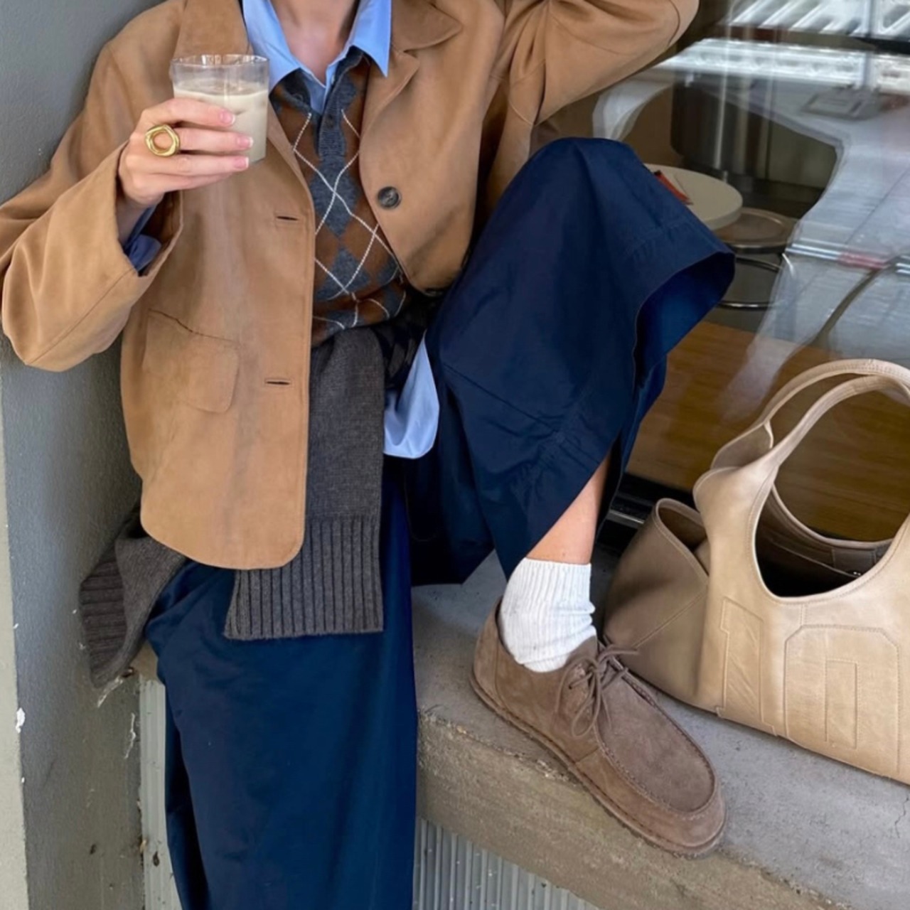 落ち着いた色合いで、大人カジュアルな着こなしを楽しめます。
