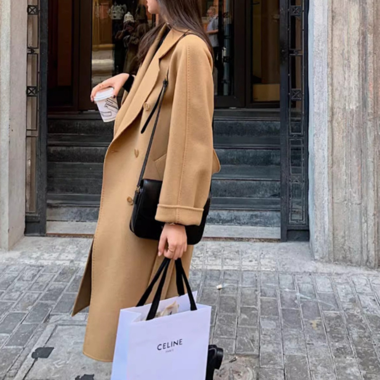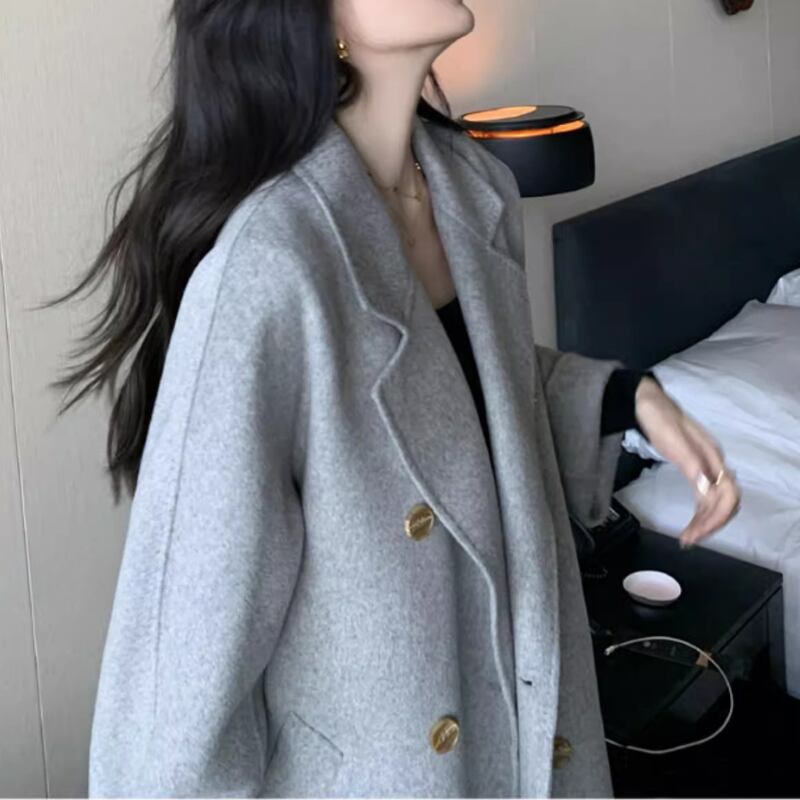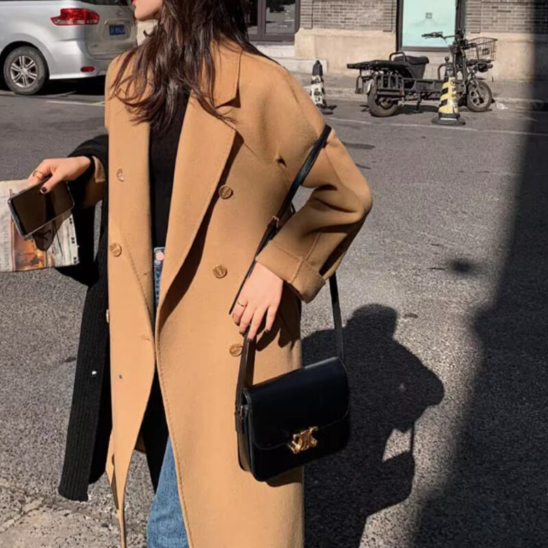 ダブルブレストのデザインが上品で洗練された印象を与えます。