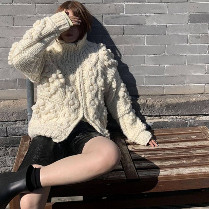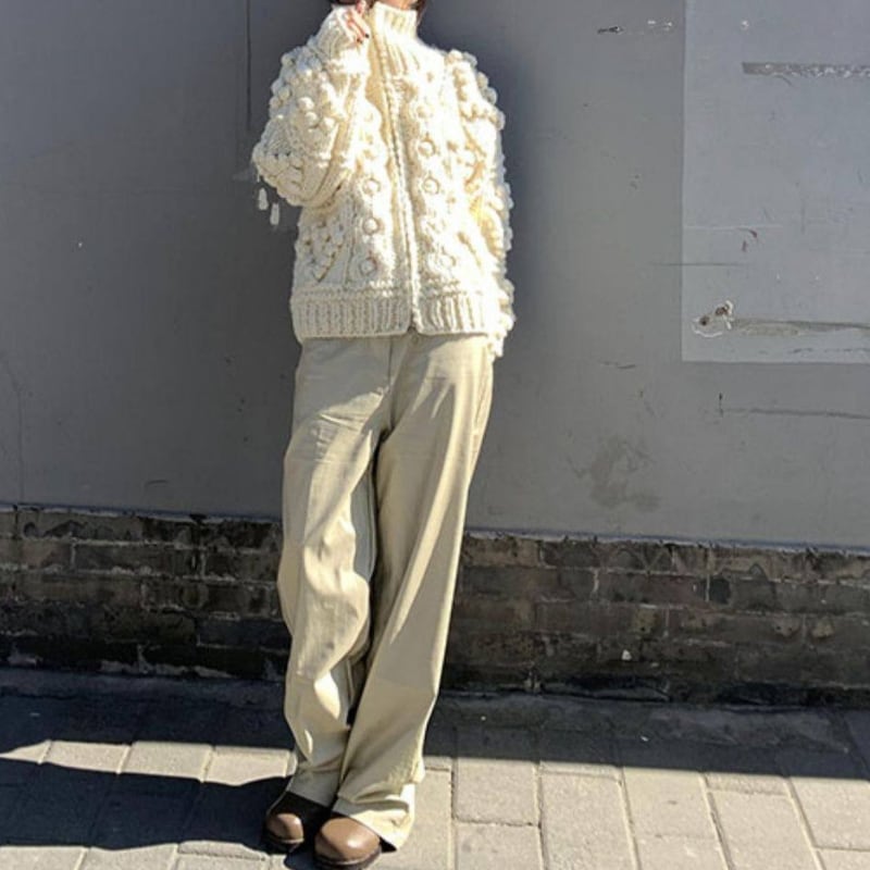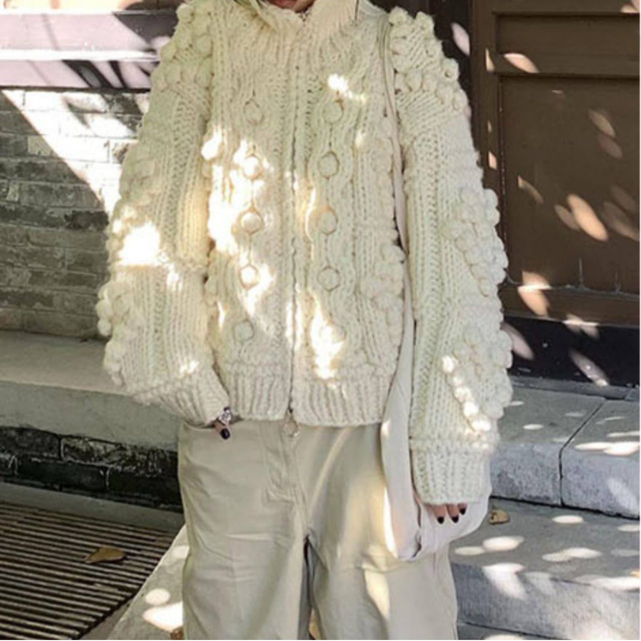 ざっくりとした編み地が魅力のニットカーディガン。 ゆったりとしたシルエットで、リラックスした着心地が楽しめます。 ハイネックやシャツとのレイヤードスタイルにもおすすめです。 ■サイズ M 胸囲:104cm 着丈:56cm 袖丈:54cm L 胸囲:108cm 着丈:57cm 袖丈:55cm XL 胸囲:112cm 着丈:58cm 袖丈:56cm 海外製品の為1〜3㎝誤差がある場合がございます。 ■カラー オフホワイト ■素材 ウール60%、その他の素材40% ◼️注意事項 ・こちらは輸入品となります。 日本製とは検品基準が異なる為、新品未使用品でも ごくわずかな汚れや傷がある場合もございます。 ・商品の色味は、お手持ちのスマートフォンの 画面によって実物と若干異なる場合がございます。 ———————————— ご購入前にこちらをご確認ください → https://shop.maison-alea.com/about ————————————