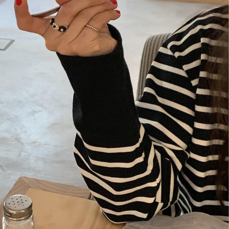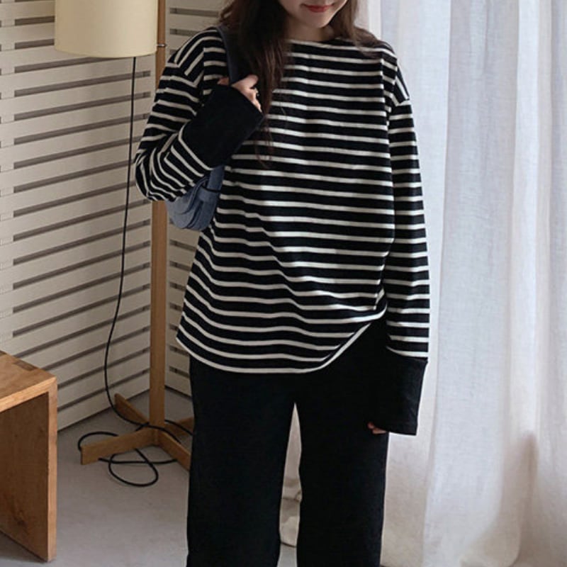 定番のストライプ柄で、どんなボトムスにも合わせやすい長袖Tシャツ。 カジュアルな着こなしはもちろん、ジャケットやカーディガンを羽織れば、きれいめスタイルにも対応できます。 着回し力抜群で、ワードローブに欠かせないアイテムです。 ■サイズ M 肩幅:61cm 胸囲:96cm 着丈:61cm 袖丈:45cm L 肩幅:62cm 胸囲:102cm 着丈:62cm 袖丈:46cm XL 肩幅:63cm 胸囲:108cm 着丈:63cm 袖丈:47cm 海外製品の為1〜3㎝誤差がある場合がございます。 ■カラー ホワイト×ブルー ブラック×ピンク ブラック×ホワイト ■素材 綿100% ◼️注意事項 ・こちらは輸入品となります。 日本製とは検品基準が異なる為、新品未使用品でも ごくわずかな汚れや傷がある場合もございます。 ・商品の色味は、お手持ちのスマートフォンの 画面によって実物と若干異なる場合がございます。 ———————————— ご購入前にこちらをご確認ください → https://shop.maison-alea.com/about ————————————