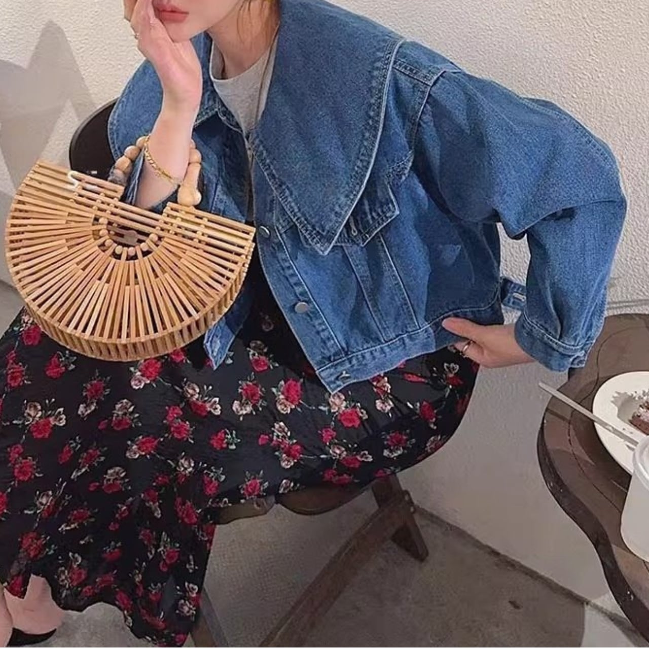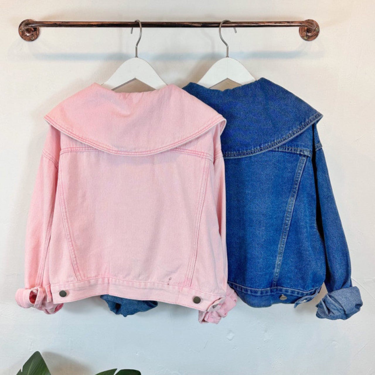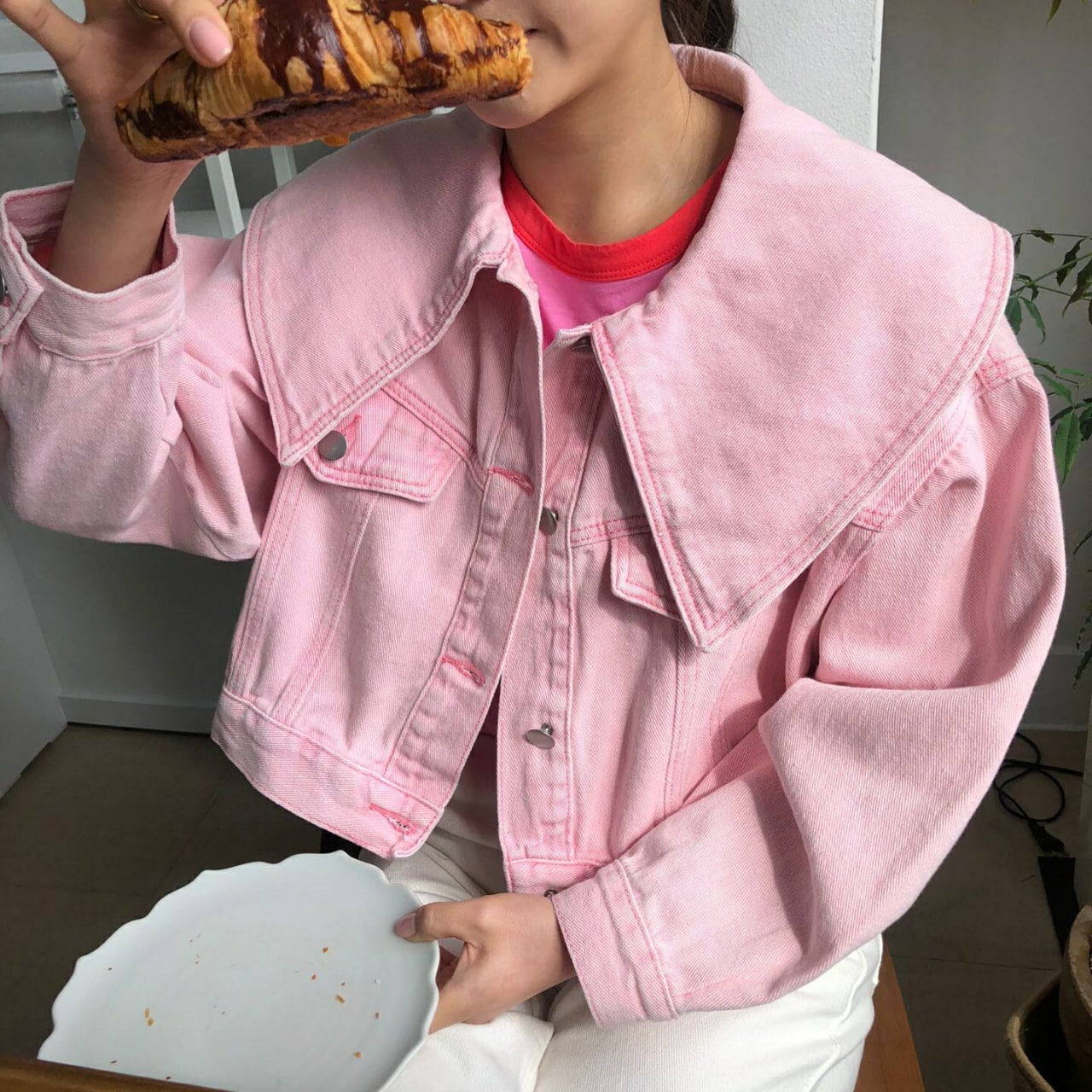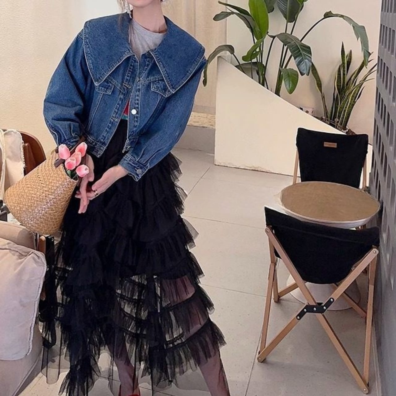 存在感のある襟が特徴で、着るだけでトレンド感溢れるスタイルになれるデニムジャケット。