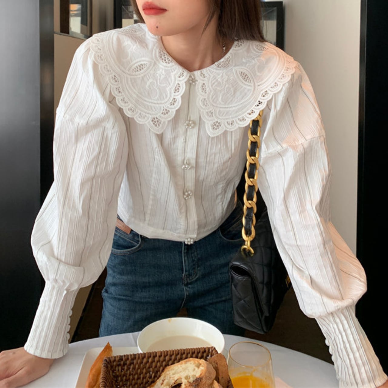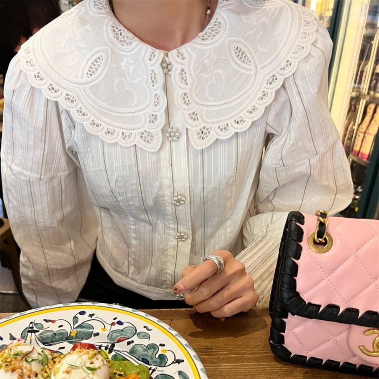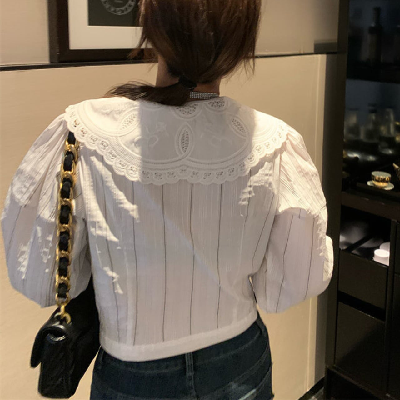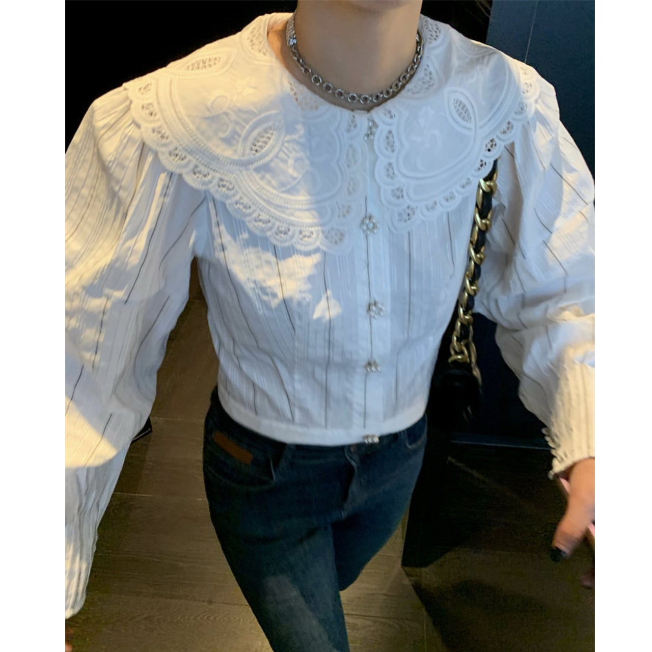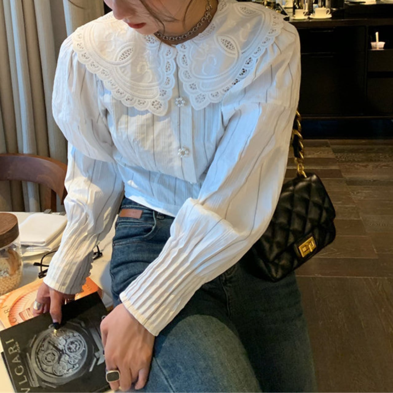 トレンド感のある着こなしが叶う、ショート丈ブラウス。 存在感のあるレース襟が顔まわりを華やかに演出。 普段使いはもちろん、ちょっとしたお呼ばれにもおすすめです。 ■サイズ S 肩幅:34cm 胸囲:86cm 着丈:43cm 袖丈:61cm M 肩幅:35cm 胸囲:90cm 着丈:44cm 袖丈:62cm L 肩幅:36cm 胸囲:94cm 着丈:45cm 袖丈:63cm 海外製品の為1〜3㎝誤差がある場合がございます。 ■カラー ホワイト ■素材 綿53.9%、ナイロン25.8%、ポリエステル20.3% ◼️注意事項 ・こちらは輸入品となります。 日本製とは検品基準が異なる為、新品未使用品でも ごくわずかな汚れや傷がある場合もございます。 ・商品の色味は、お手持ちのスマートフォンの 画面によって実物と若干異なる場合がございます。 ———————————— ご購入前にこちらをお読みください → https://shop.maison-alea.com/about ————————————