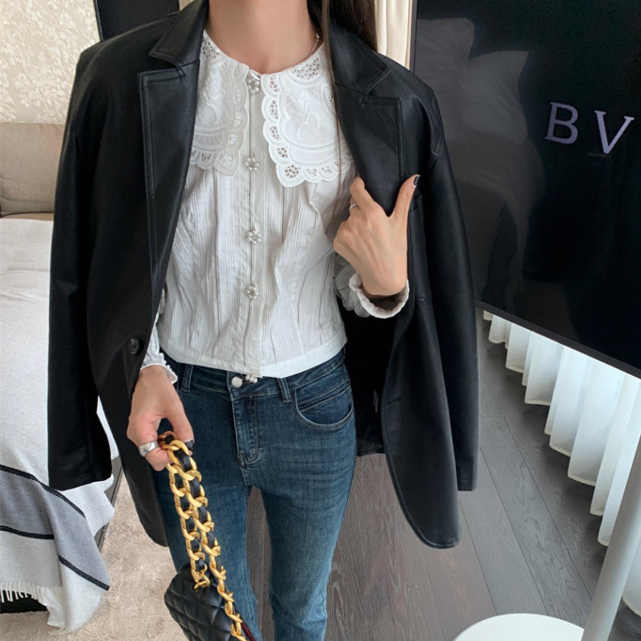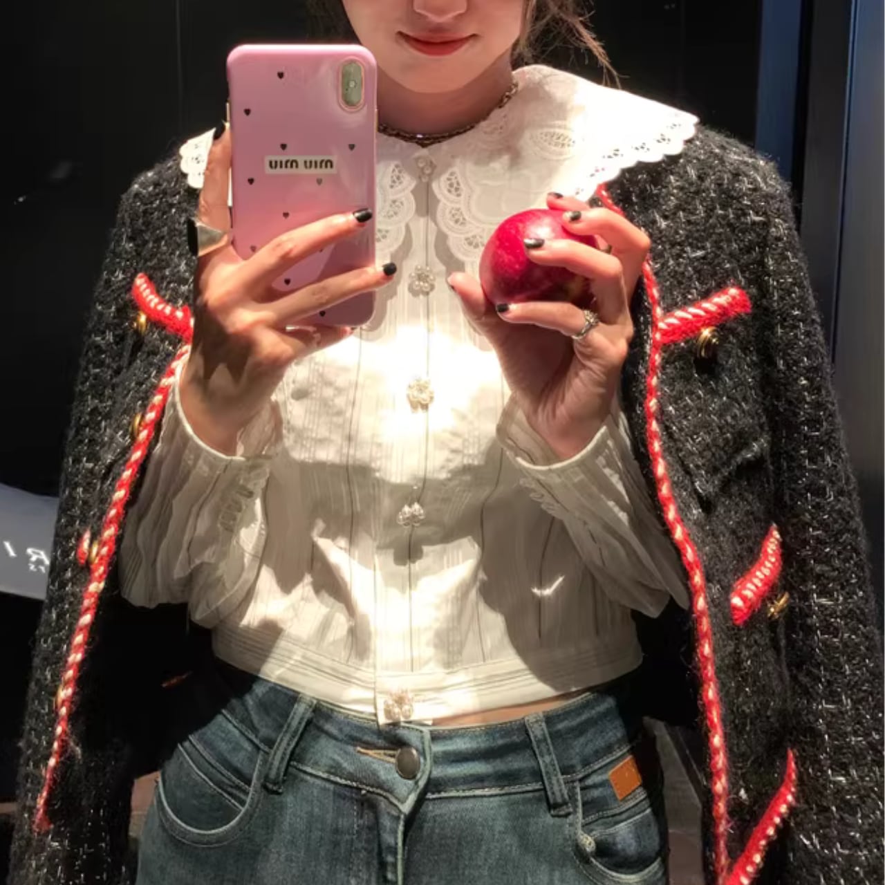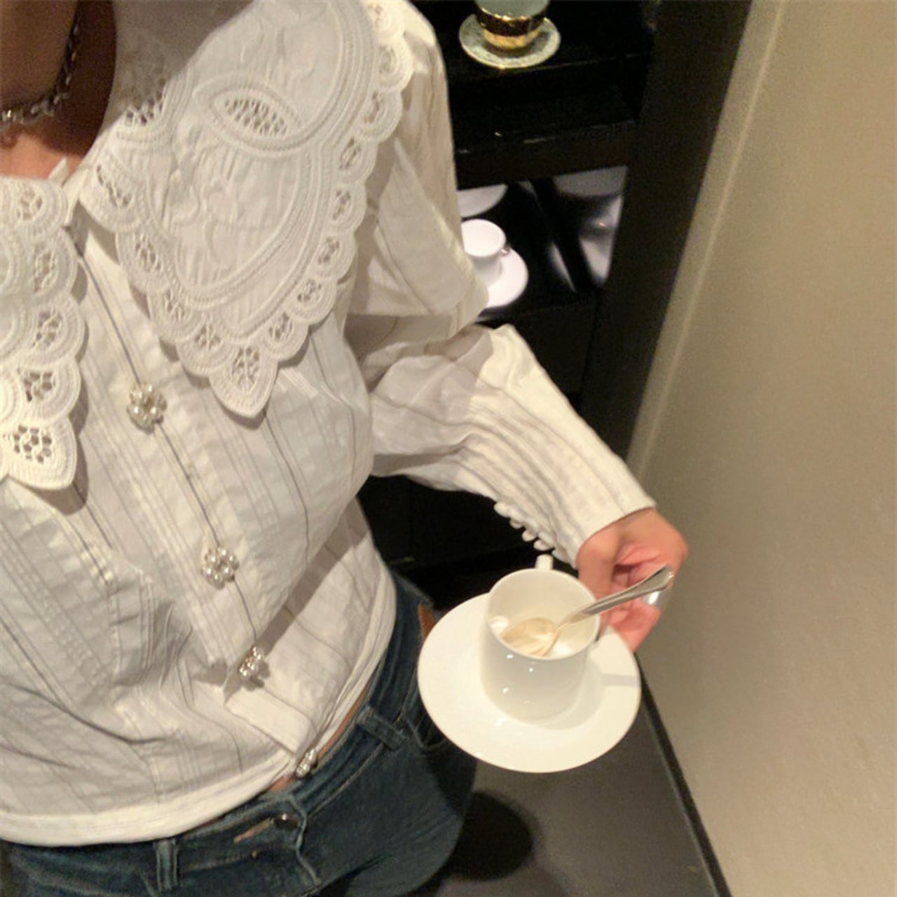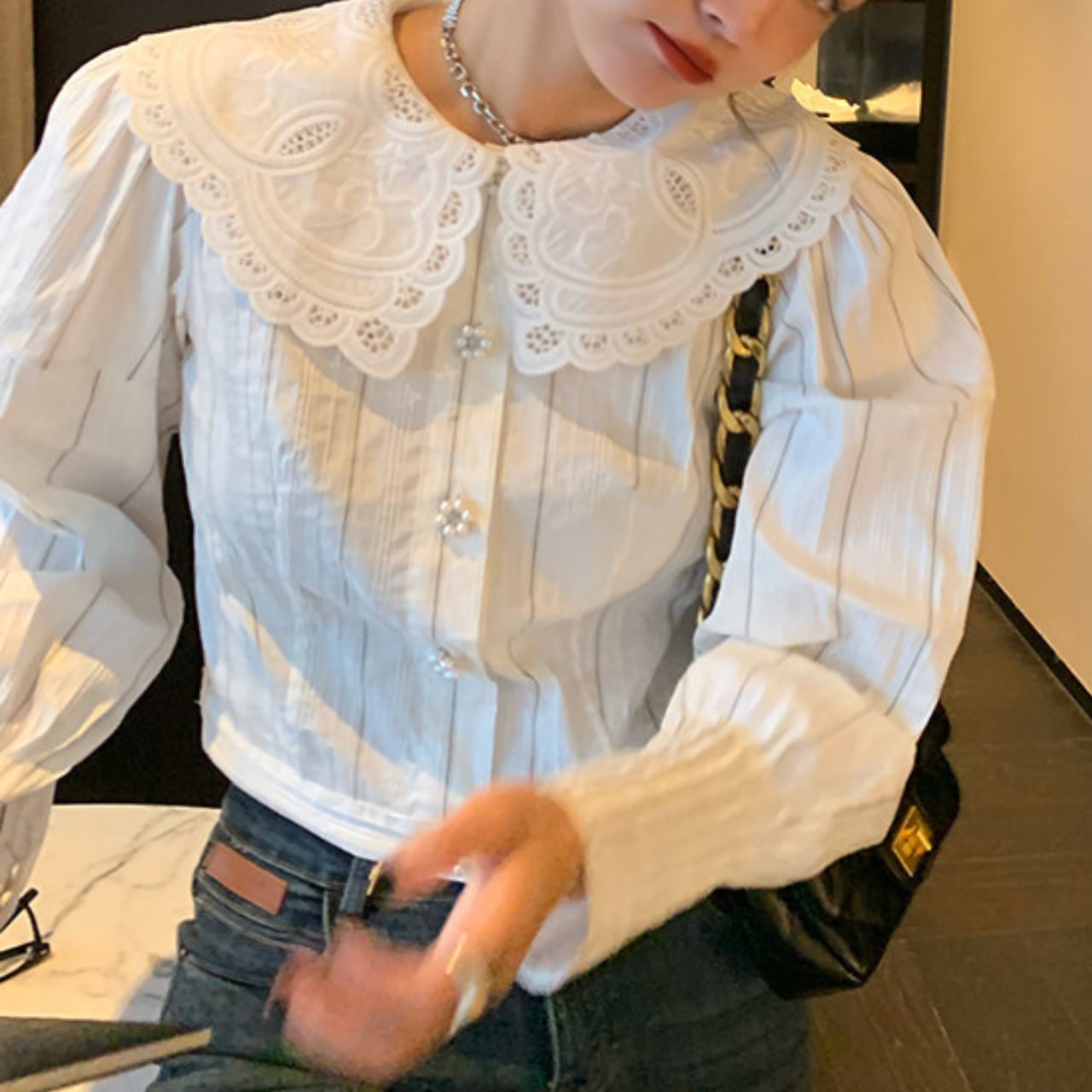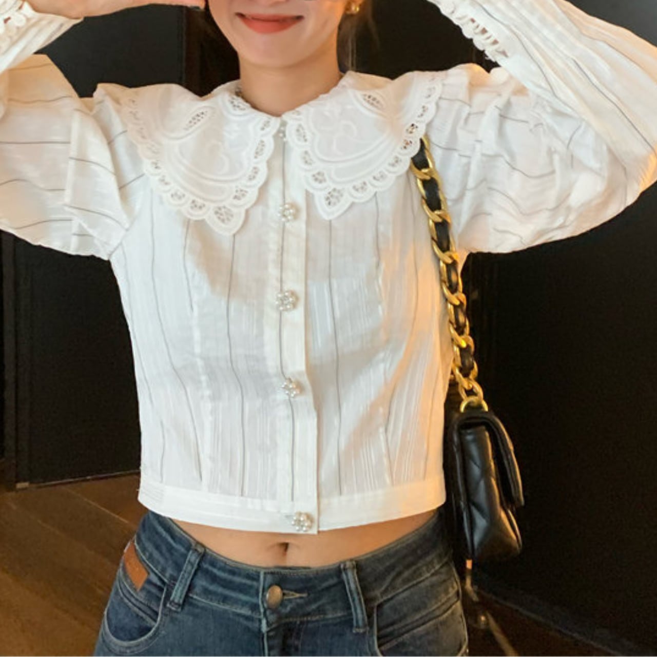 トレンド感のある着こなしが叶う、ショート丈ブラウス。 存在感のあるレース襟が顔まわりを華やかに演出。 普段使いはもちろん、ちょっとしたお呼ばれにもおすすめです。 ■サイズ S 肩幅:34cm 胸囲:86cm 着丈:43cm 袖丈:61cm M 肩幅:35cm 胸囲:90cm 着丈:44cm 袖丈:62cm L 肩幅:36cm 胸囲:94cm 着丈:45cm 袖丈:63cm 海外製品の為1〜3㎝誤差がある場合がございます。 ■カラー ホワイト ■素材 綿53.9%、ナイロン25.8%、ポリエステル20.3% ◼️注意事項 ・こちらは輸入品となります。 日本製とは検品基準が異なる為、新品未使用品でも ごくわずかな汚れや傷がある場合もございます。 ・商品の色味は、お手持ちのスマートフォンの 画面によって実物と若干異なる場合がございます。 ———————————— ご購入前にこちらをお読みください → https://shop.maison-alea.com/about ————————————