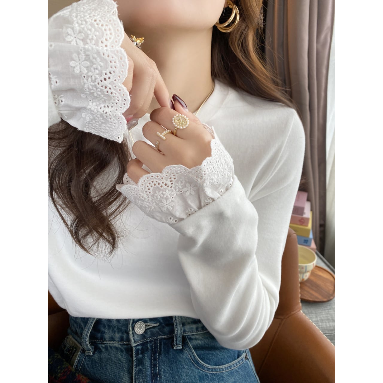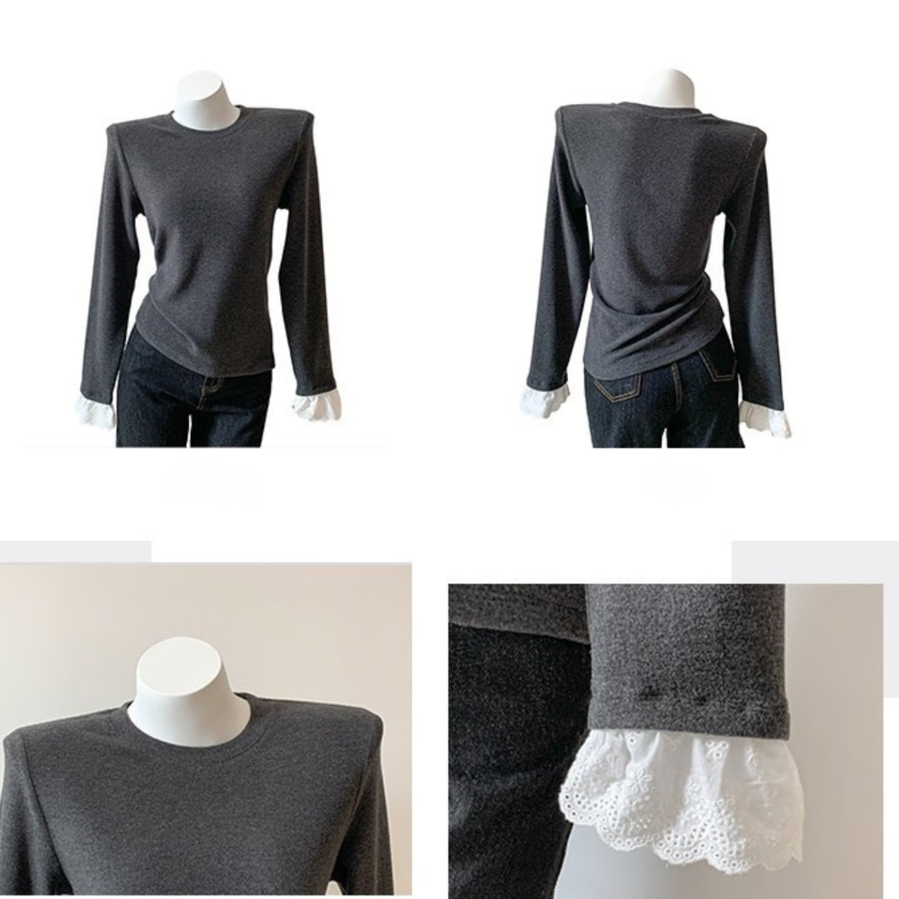 袖口のレースがポイントの長袖カットソー。 シンプルな着こなしでも、袖口のレースがフェミニンな印象をプラス。 重ね着にも使いやすく、コーディネートの幅が広がります。 ■サイズ S 肩幅:37cm 胸囲:84cm 着丈:55cm 袖丈:61cm M 肩幅:38cm 胸囲:88cm 着丈:56cm 袖丈:62cm L 肩幅:39cm 胸囲:92cm 着丈:57cm 袖丈:63cm 海外製品の為1〜3㎝誤差がある場合がございます。 ■カラー グレー ホワイト ■素材 ポリエステル ◼️注意事項 ・こちらは輸入品となります。 日本製とは検品基準が異なる為、新品未使用品でも ごくわずかな汚れや傷がある場合もございます。 ・商品の色味は、お手持ちのスマートフォンの 画面によって実物と若干異なる場合がございます。 ———————————— ご購入前にこちらをお読みください → https://shop.maison-alea.com/about ————————————