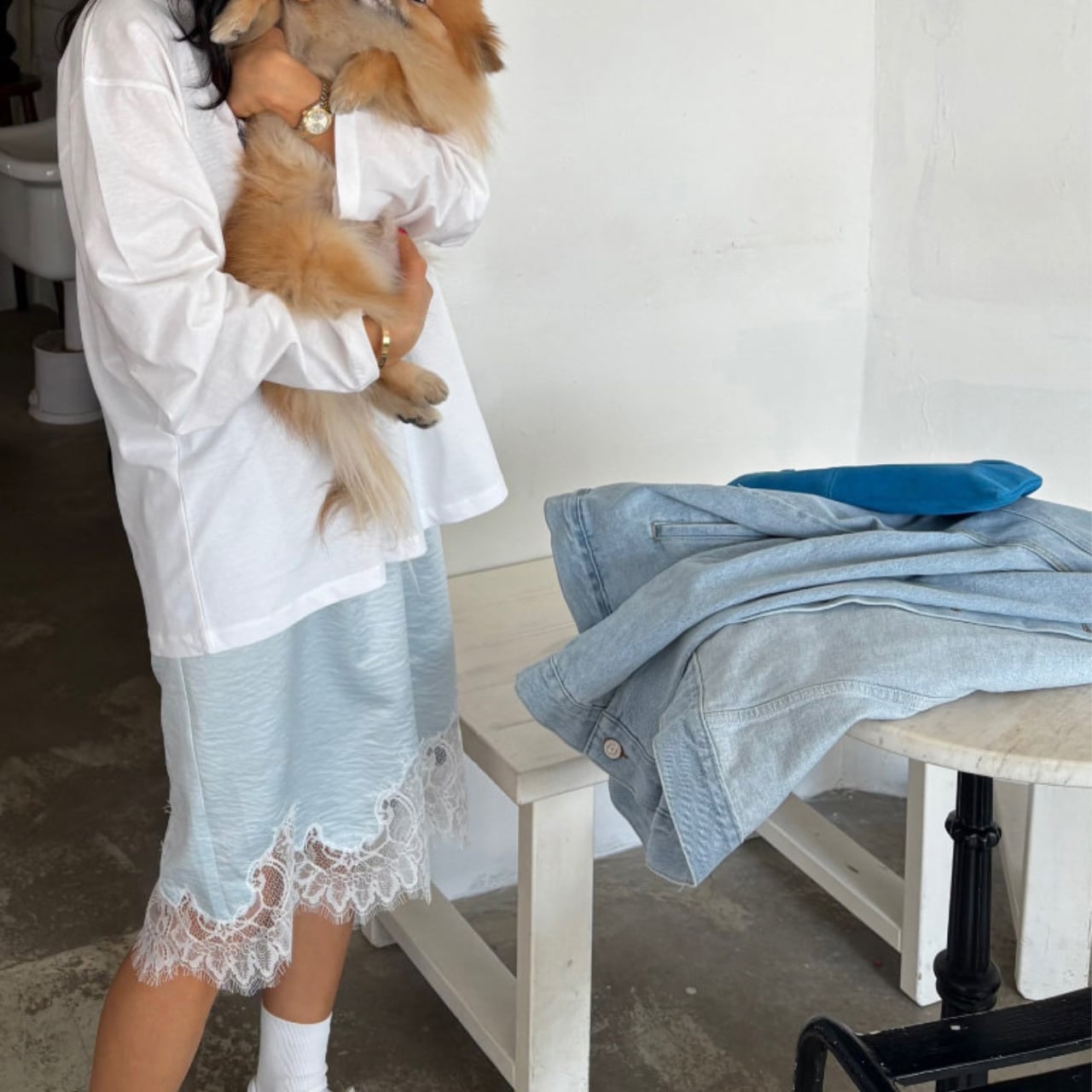 カジュアルスタイルに合わせて、程よく甘さを抑えたスタイルもおすすめです。