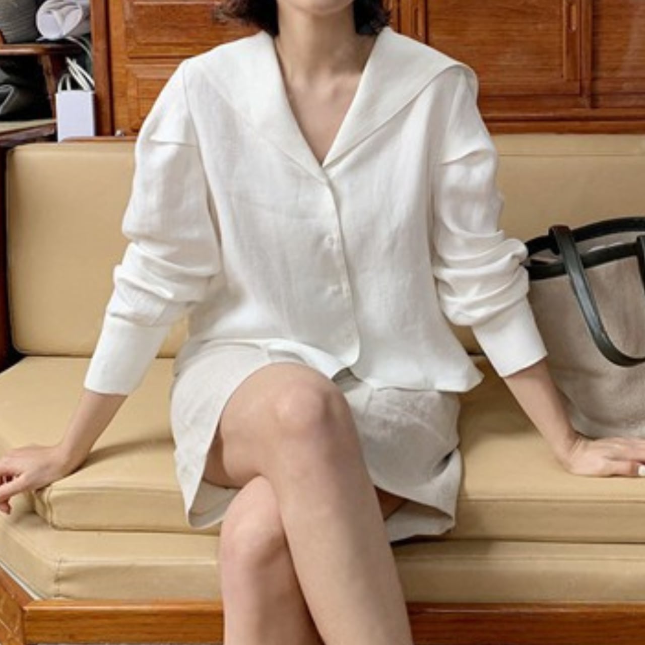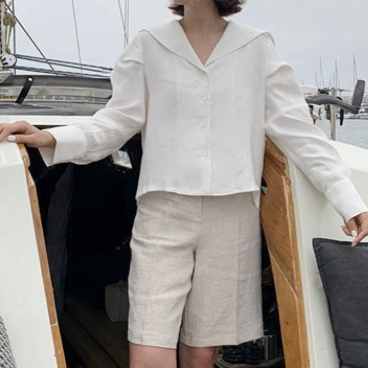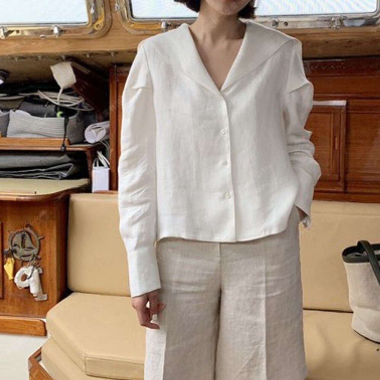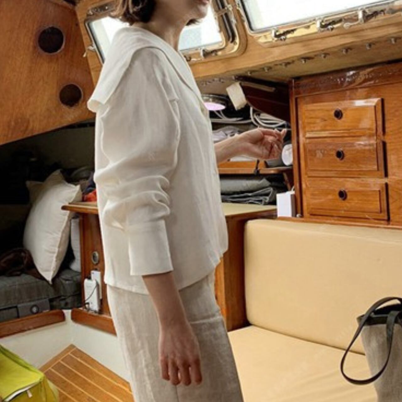 セーラーカラーが顔まわりをやわらかく見せ、上品な抜け感を演出します。 カジュアルながらも上品な印象を与え、普段使いしやすいデザインです。 ■サイズ 肩幅:41cm 胸囲:106cm 袖幅:23cm 着丈:54cm 袖丈:63cm 海外製品の為1〜3㎝誤差がある場合がございます。 ■カラー ホワイト ネイビー オートミール ブラック ■素材 リネン 【お手入れについて】 リネン素材はシワが入りやすい特徴がございます。お洗濯の際は手洗い、またはデリケート洗いを推奨しております。洗濯後は形を整えて陰干ししてください。 ◼️注意事項 ・こちらは輸入品となります。 日本製とは検品基準が異なる為、新品未使用品でも ごくわずかな汚れや傷がある場合もございます。 ・商品の色味は、お手持ちのデバイスの 画面によって実物と若干異なる場合がございます。 ———————————— ご購入前にこちらをお読みください → https://shop.maison-alea.com/about ————————————