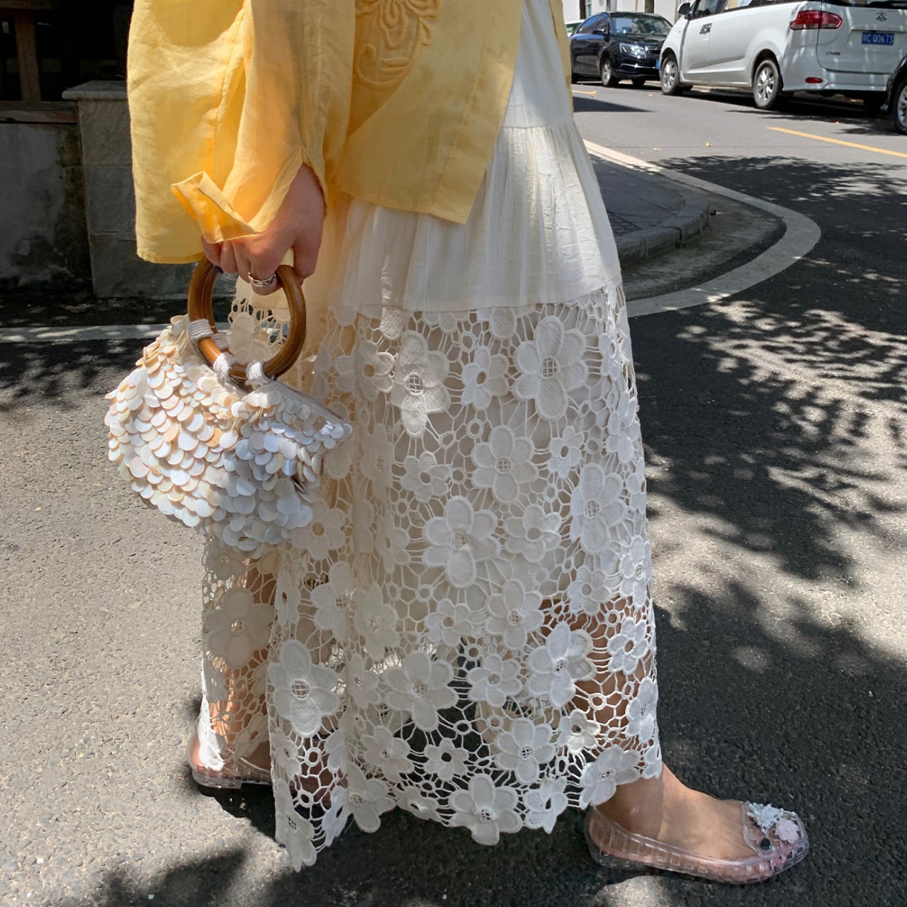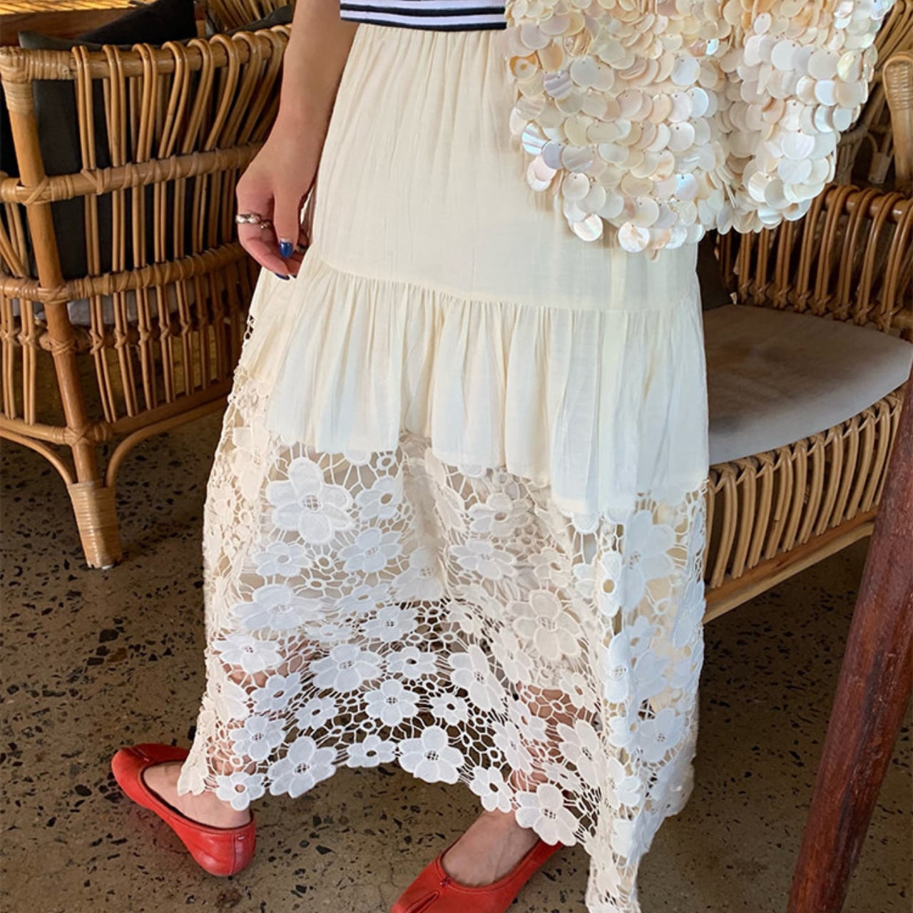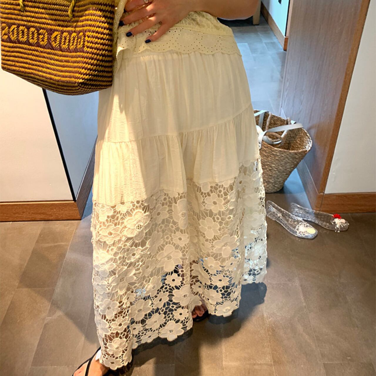 歩くたびにふわりと揺れるフラワーレースが魅力的なロングスカート。 普段使いはもちろん、リゾートシーンにもおすすめです。 ■サイズ S ウエスト:59-88cm スカート丈:89cm M ウエスト:63-92cm スカート丈:90cm L ウエスト:67-96cm スカート丈:91cm 海外製品の為1〜3㎝誤差がある場合がございます。 ■カラー オフホワイト ■素材 コットン ◼️注意事項 ・こちらは輸入品となります。 日本製とは検品基準が異なる為、新品未使用品でも ごくわずかな汚れや傷がある場合もございます。 ・商品の色味は、お手持ちのスマートフォンの 画面によって実物と若干異なる場合がございます。 ———————————— ご購入前にこちらをお読みください → https://shop.maison-alea.com/about ————————————