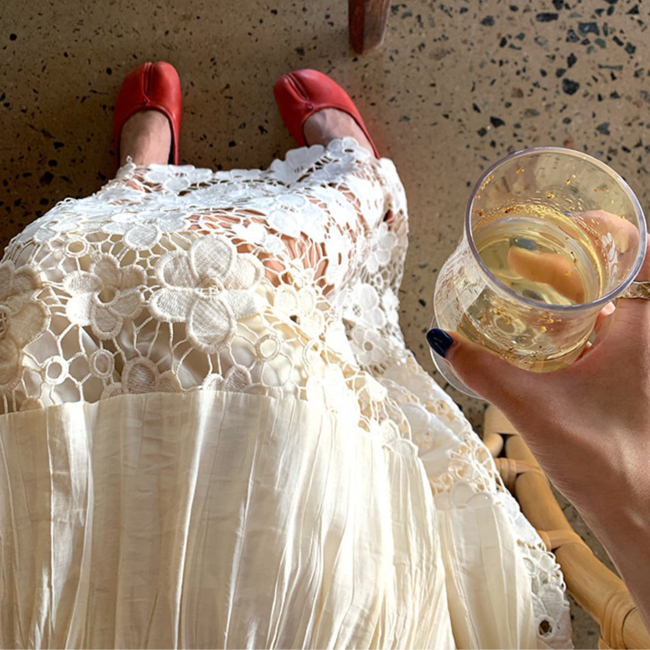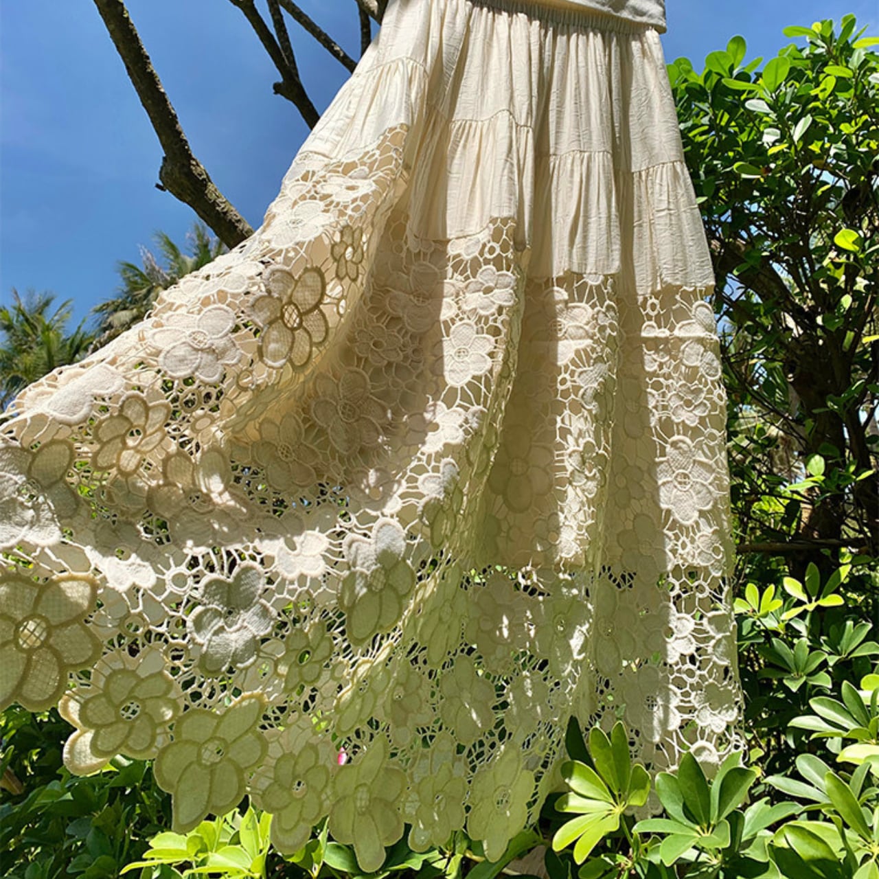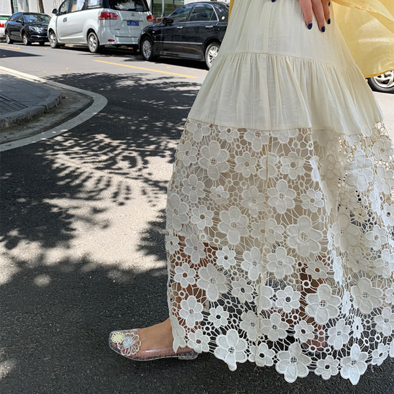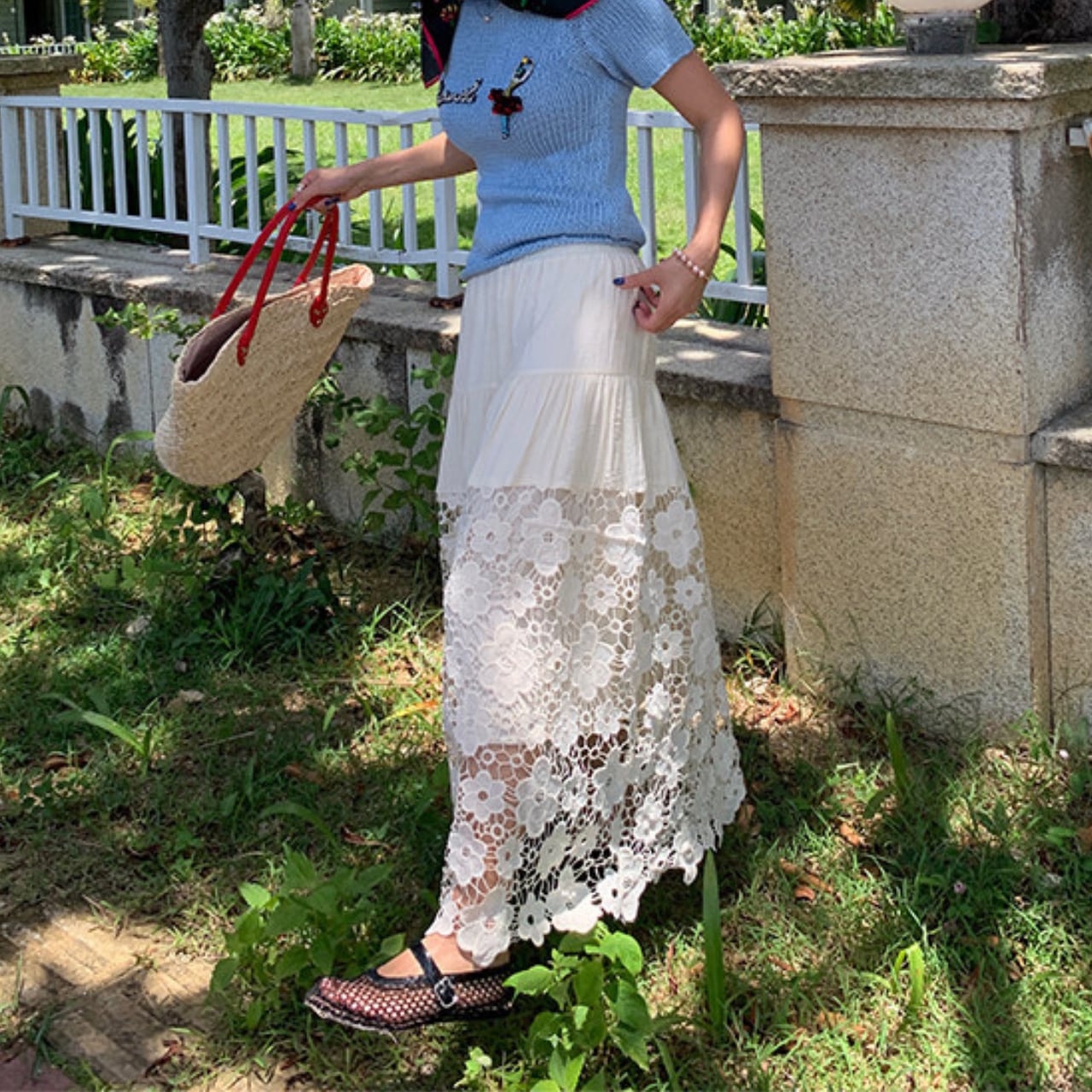 歩くたびにふわりと揺れるフラワーレースが魅力的なロングスカート。 普段使いはもちろん、リゾートシーンにもおすすめです。 ■サイズ S ウエスト:59-88cm スカート丈:89cm M ウエスト:63-92cm スカート丈:90cm L ウエスト:67-96cm スカート丈:91cm 海外製品の為1〜3㎝誤差がある場合がございます。 ■カラー オフホワイト ■素材 コットン ◼️注意事項 ・こちらは輸入品となります。 日本製とは検品基準が異なる為、新品未使用品でも ごくわずかな汚れや傷がある場合もございます。 ・商品の色味は、お手持ちのスマートフォンの 画面によって実物と若干異なる場合がございます。 ———————————— ご購入前にこちらをお読みください → https://shop.maison-alea.com/about ————————————