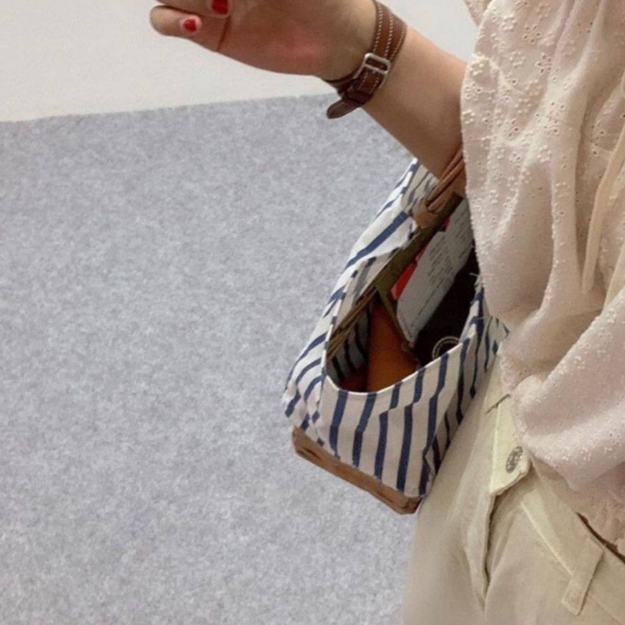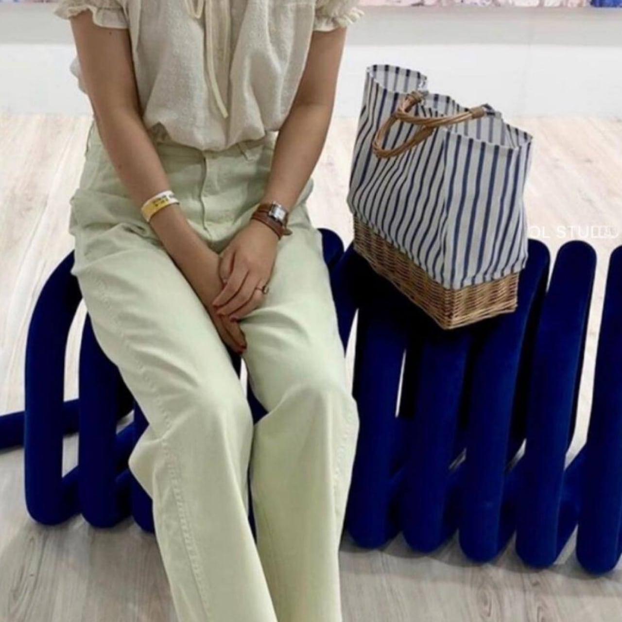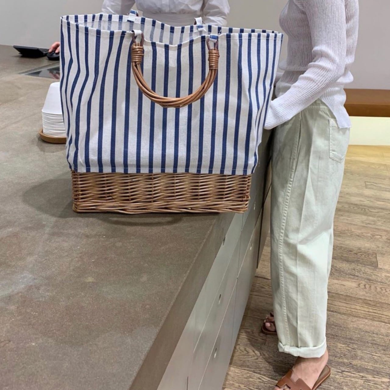 ラタン素材とストライプ柄の組み合わせが、涼しげでシーズンムードを高めてくれます。