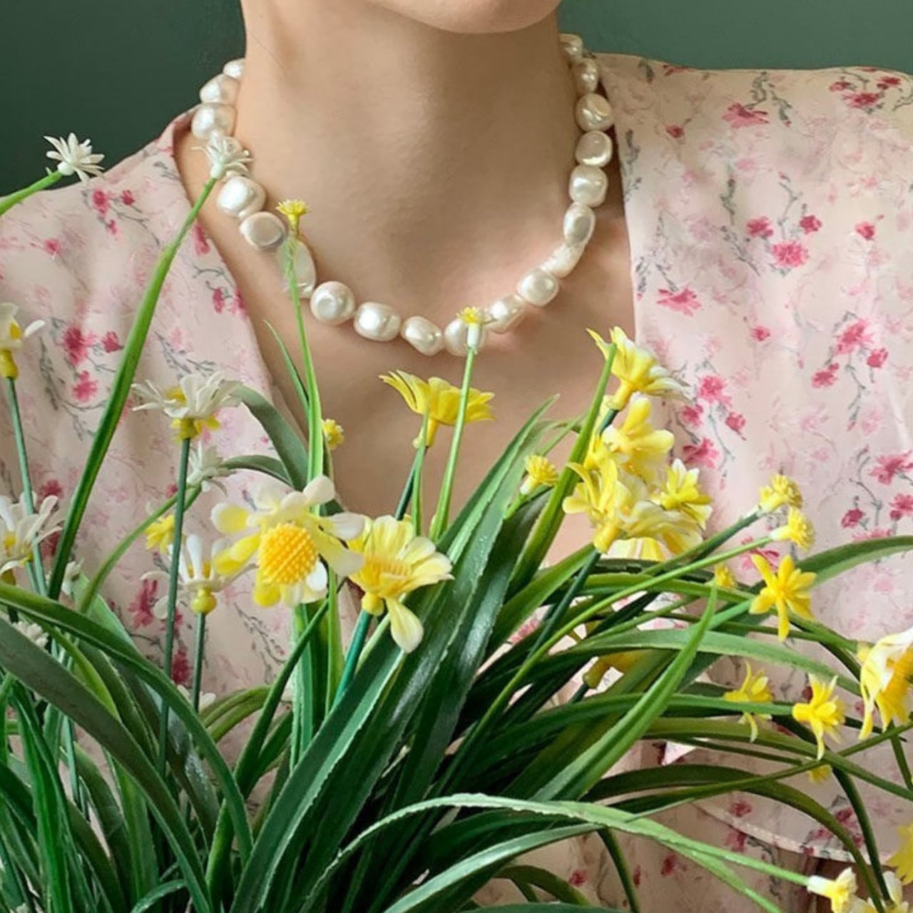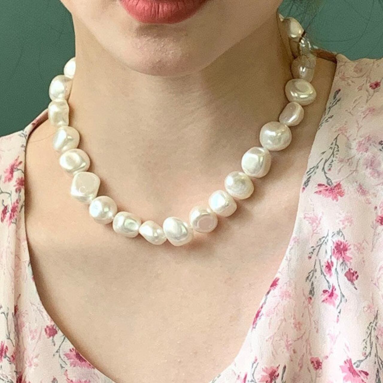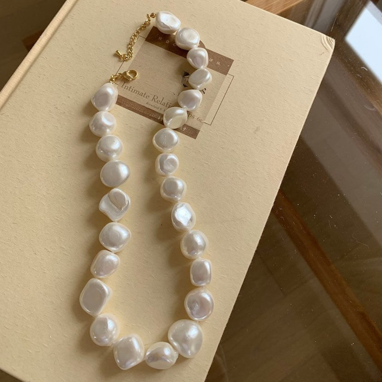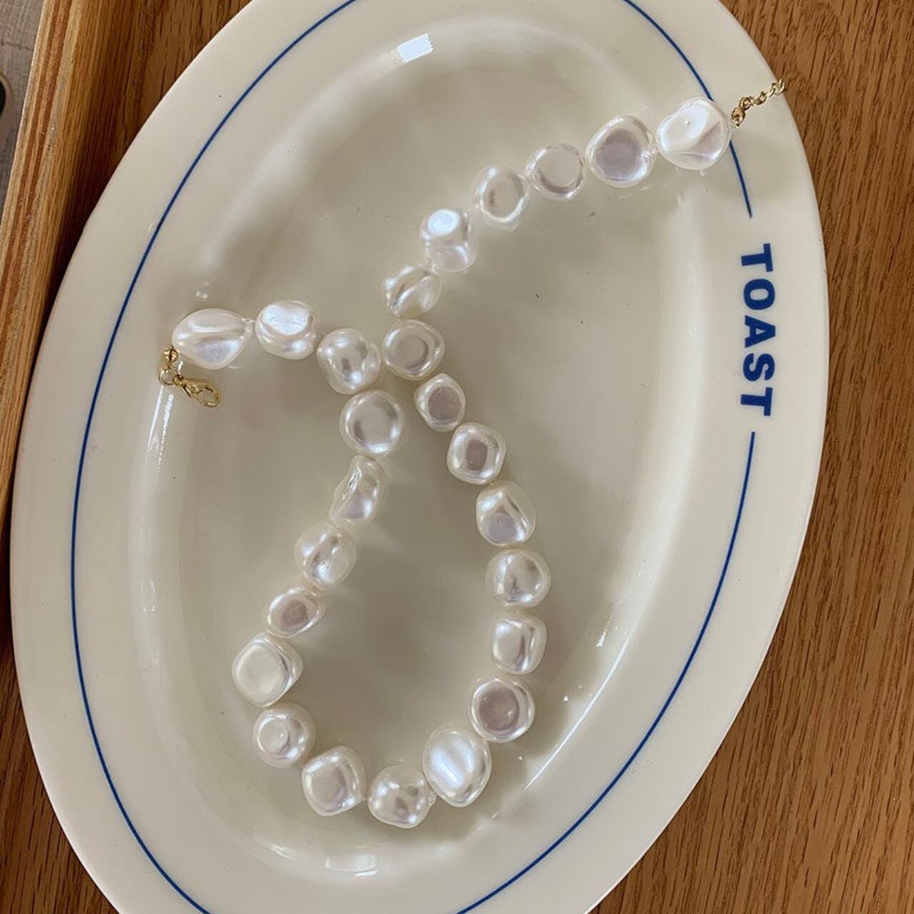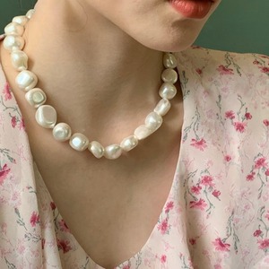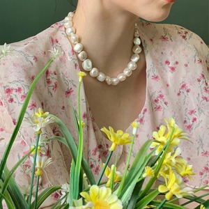 不揃いの形が魅力的なバロックパール風ネックレス。