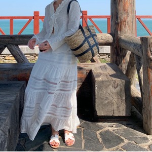 【発送について】 当ショップの商品は海外からのお取り寄せとなります。 ご注文後に仕入れを行うため、 発送まで1週間〜3週間ほどお時間をいただいております。 ーーーーーーーーーーーーーーーーーー 繊細なレース使いが目を引くマキシスカート。 存在感のある着こなしが完成します。 リゾートシーンや休日のお出かけにもおすすめです。 ニットやスウェットとも好相性で春先からロングシーズン活躍する一枚。 ■サイズ S スカート丈:91cm ウエスト:60-65cm ヒップ:108cm M スカート丈:92cm ウエスト:65-70cm ヒップ:112cm L スカート丈:93cm ウエスト:70-75cm ヒップ:116cm 海外製品の為1〜3㎝誤差がある場合がございます。 ■カラー ホワイト ■素材 ポリエステル繊維 70.7% 綿 29.3% ◼️注意事項 ・こちらは輸入品となります。 日本製とは検品基準が異なる為、新品未使用品でも ごくわずかな汚れや傷がある場合もございます。 ・商品の色味は、お手持ちのスマートフォンの 画面によって実物と若干異なる場合がございます。 ———————————— ご購入前にこちらをお読みください → https://shop.maison-alea.com/about ————————————
