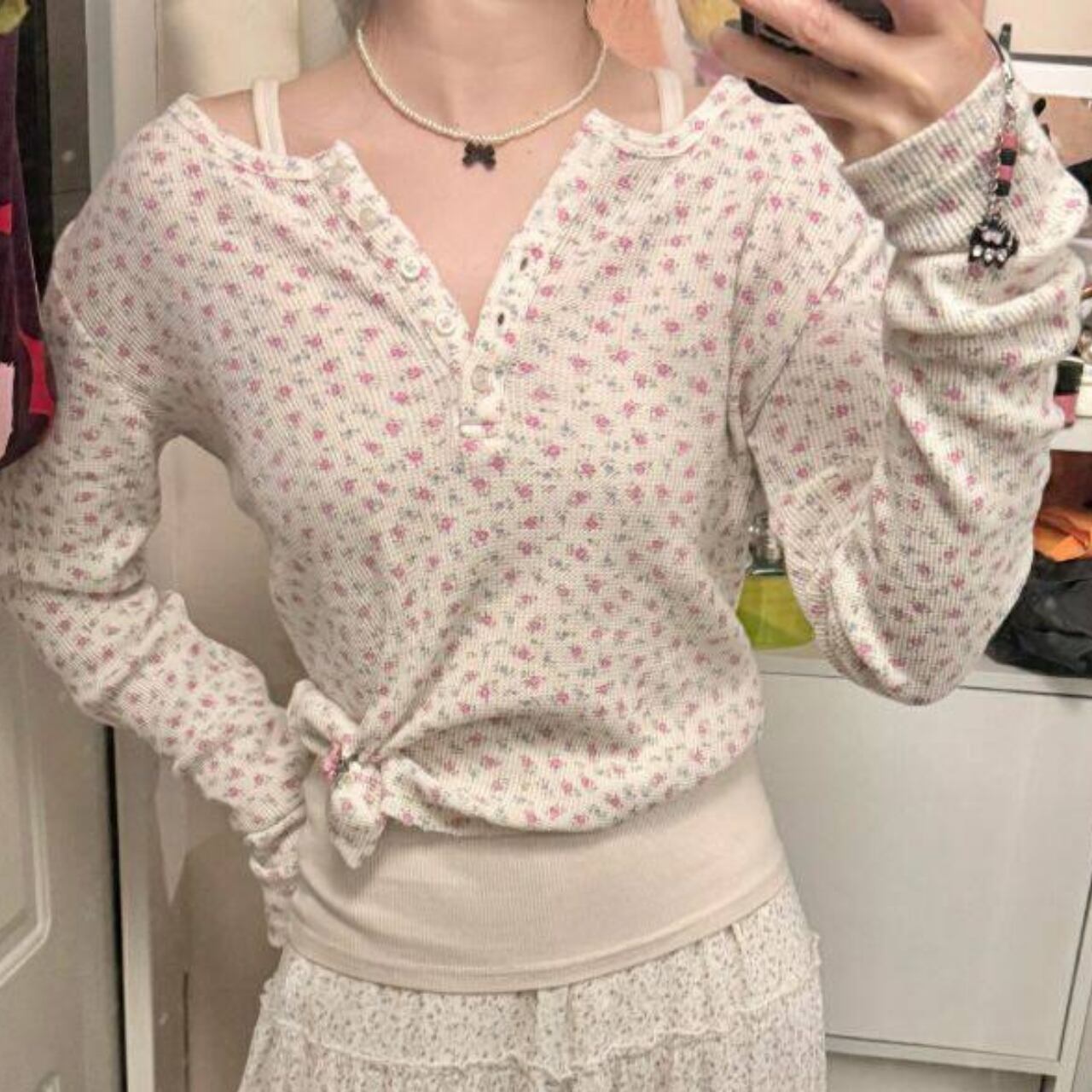 リラックス感のある着心地が魅力のカットソー。 可愛らしい小花柄が、コーディネートに華やかさをプラスします。 デニムやスカートなど、様々なボトムスと相性抜群です。 ■サイズ 肩幅:35cm 胸囲:84cm 着丈:54cm 海外製品の為1〜3㎝誤差がある場合がございます。 ■カラー ピンク ネイビー ■素材 ポリエステル ◼️注意事項 ・こちらは輸入品となります。 日本製とは検品基準が異なる為、新品未使用品でも ごくわずかな汚れや傷がある場合もございます。 ・商品の色味は、お手持ちのデバイスの 画面によって実物と若干異なる場合がございます。 ———————————— ご購入前にこちらをお読みください → https://shop.maison-alea.com/about ————————————
