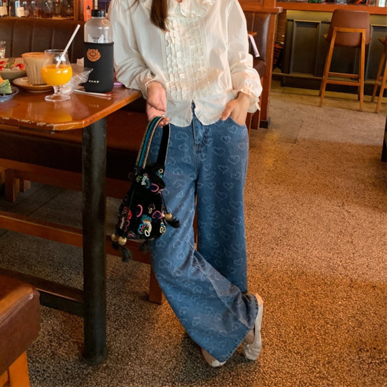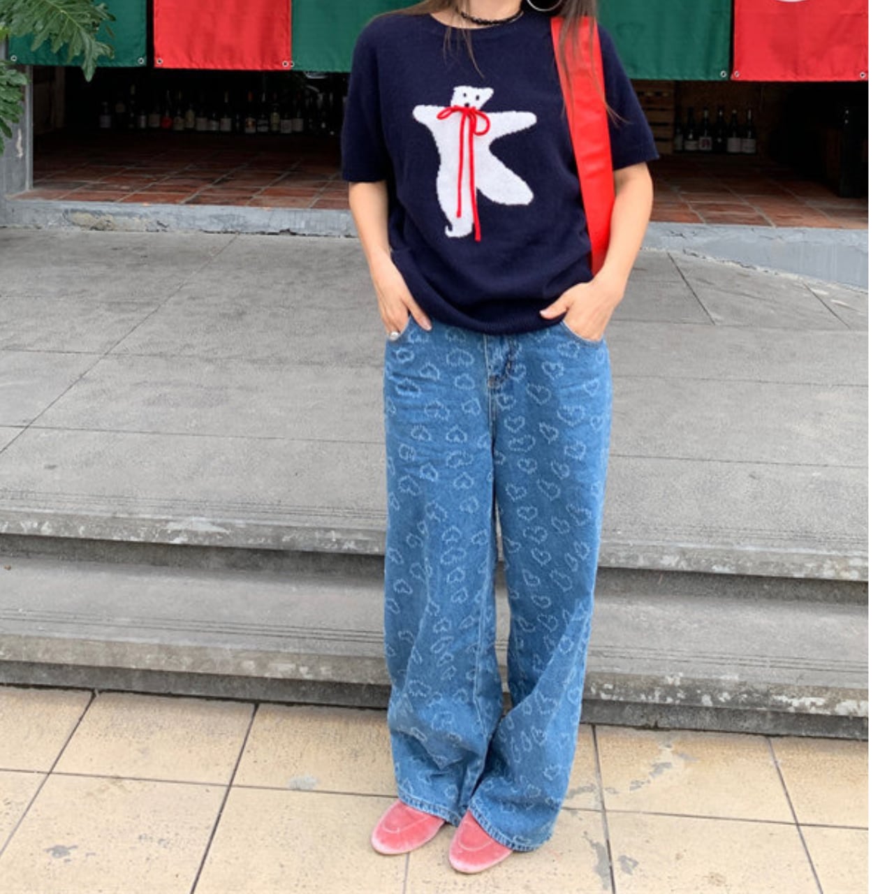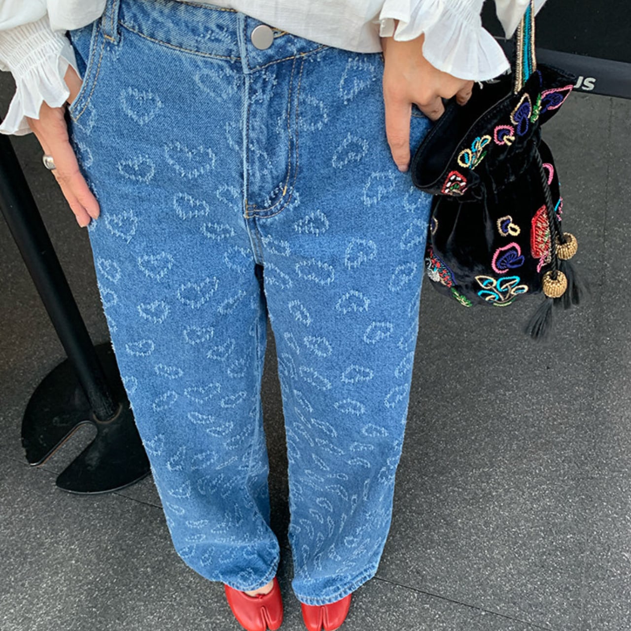 ハート柄が可愛らしさを演出するデニムパンツ。 カジュアルながらも、他にはないデザインで個性をアピールできます。 ■サイズ S ウエスト:66cm ヒップ:88cm 総丈:98cm M ウエスト:70cm ヒップ:92cm 総丈:99cm L ウエスト:74cm ヒップ:96cm 総丈:100cm 海外製品の為1〜3㎝誤差がある場合がございます。 MODEL / 163cm / 50kg / Mサイズ着用 ■素材 デニム素材 ◼️注意事項 ・こちらは輸入品となります。 日本製とは検品基準が異なる為、新品未使用品でも ごくわずかな汚れや傷がある場合もございます。 ・商品の色味は、お手持ちのデバイスの 画面によって実物と若干異なる場合がございます。 ———————————— ご購入前にこちらをお読みください → https://shop.maison-alea.com/about ————————————