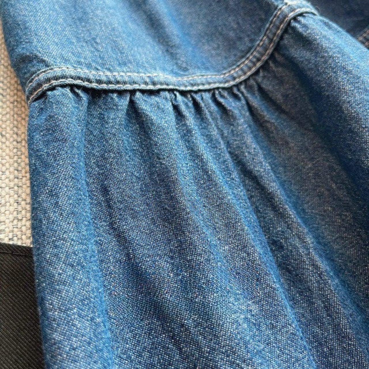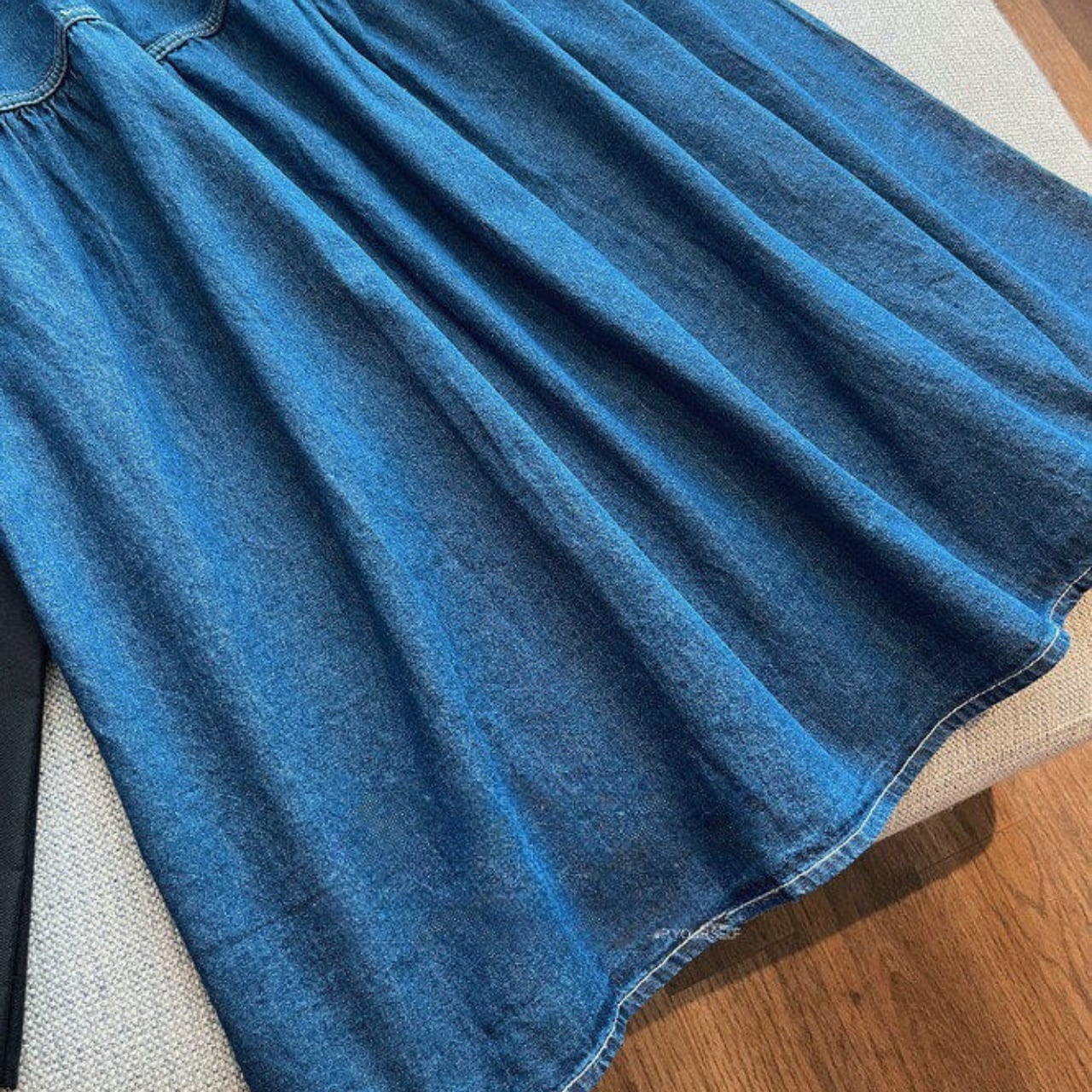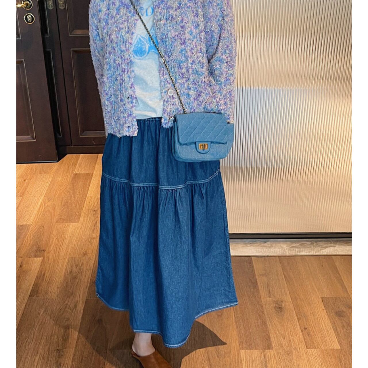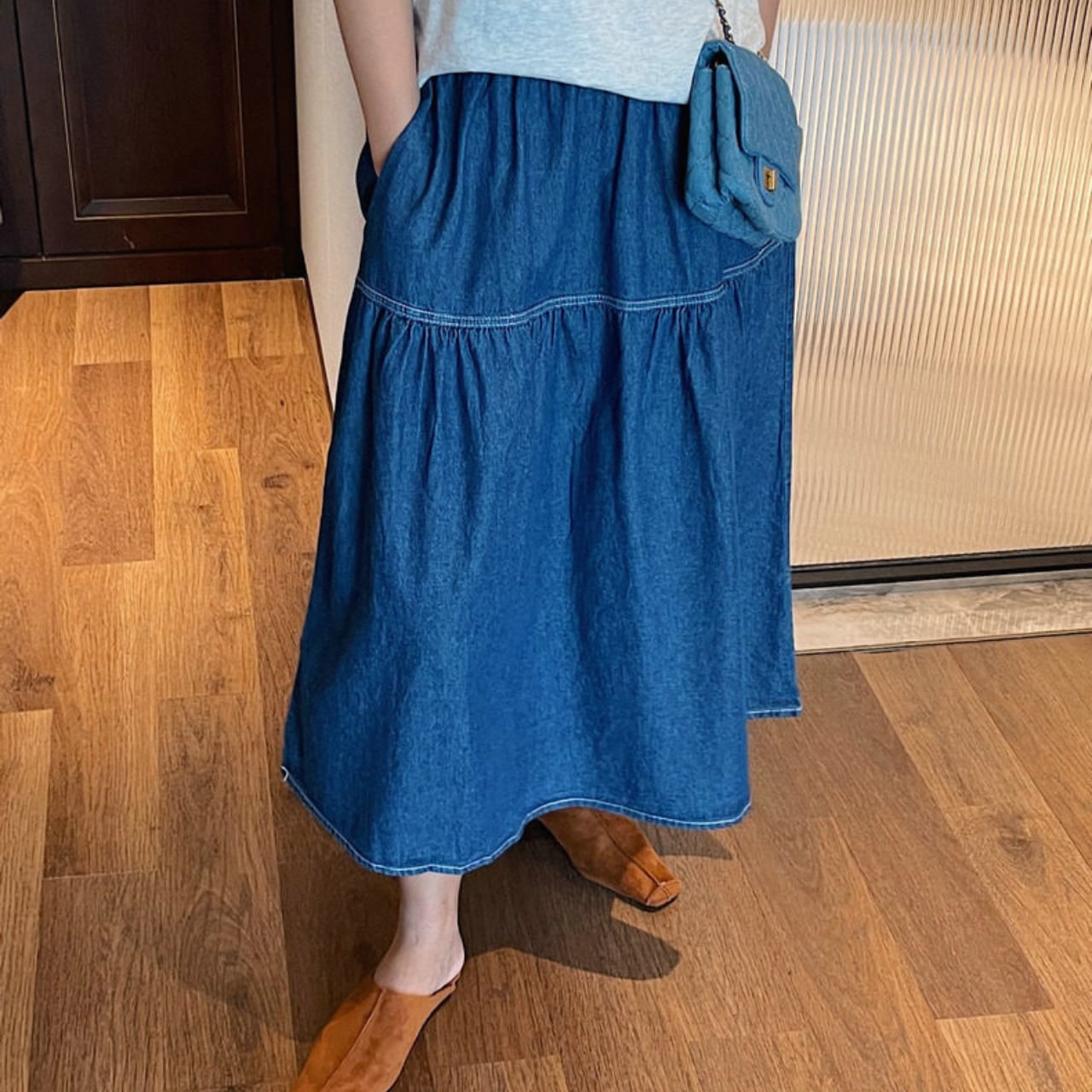 カジュアルなデニム素材ながらも、女性らしいシルエットで、普段使いからちょっとしたお出かけまで幅広く活躍します。