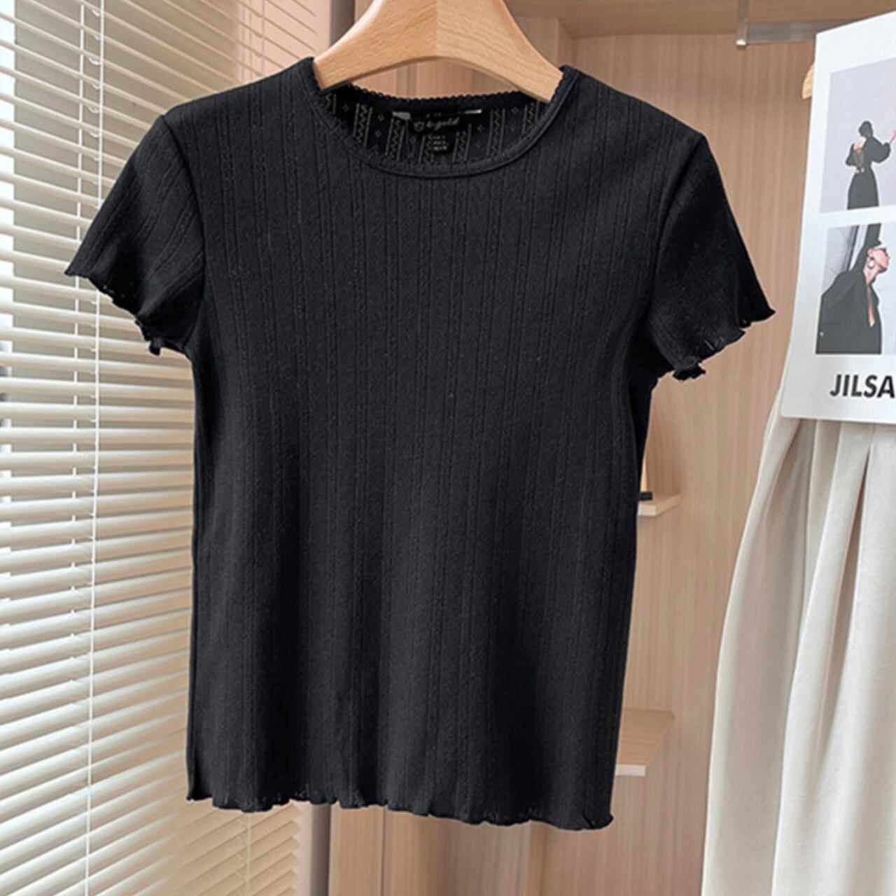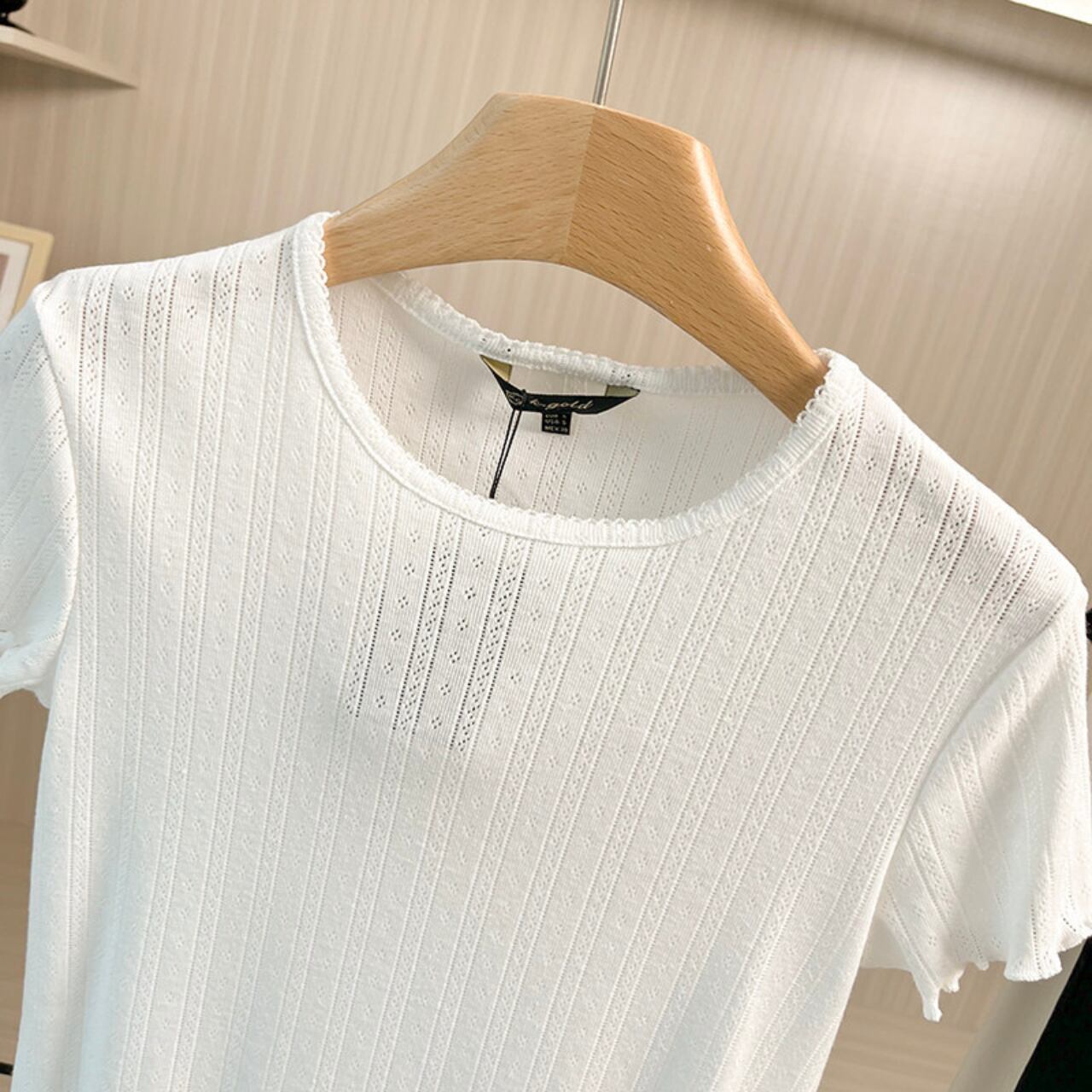 【発送について】 当ショップの商品は海外からのお取り寄せとなります。 ご注文後に仕入れを行うため、 発送まで1週間〜3週間ほどお時間をいただいております。 ーーーーーーーーーーーーーーーーーー アイレットの編地がさりげなく、カジュアルながらも上品な印象をプラス。 普段使いしやすいデザインで、様々なボトムスと相性抜群です。 ■サイズ S 肩幅:35cm 胸囲:70-84cm 着丈:49cm 袖丈:12cm M 肩幅:36cm 胸囲:74-88cm 着丈:50cm 袖丈:13cm L 肩幅:37cm 胸囲:78-92cm 着丈:51cm 袖丈:14cm 海外製品の為1〜3㎝誤差がある場合がございます。 ■カラー ホワイト ブラック ■素材 綿95% ポリウレタン5% ◼️注意事項 ・こちらは輸入品となります。 日本製とは検品基準が異なる為、新品未使用品でも ごくわずかな汚れや傷がある場合もございます。 ・商品の色味は、お手持ちのデバイスの 画面によって実物と若干異なる場合がございます。 ———————————— ご購入前にこちらをお読みください → https://shop.maison-alea.com/about ————————————