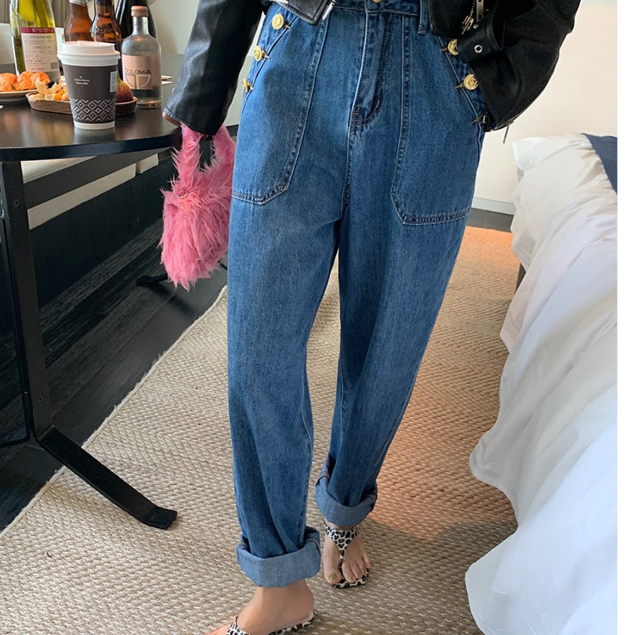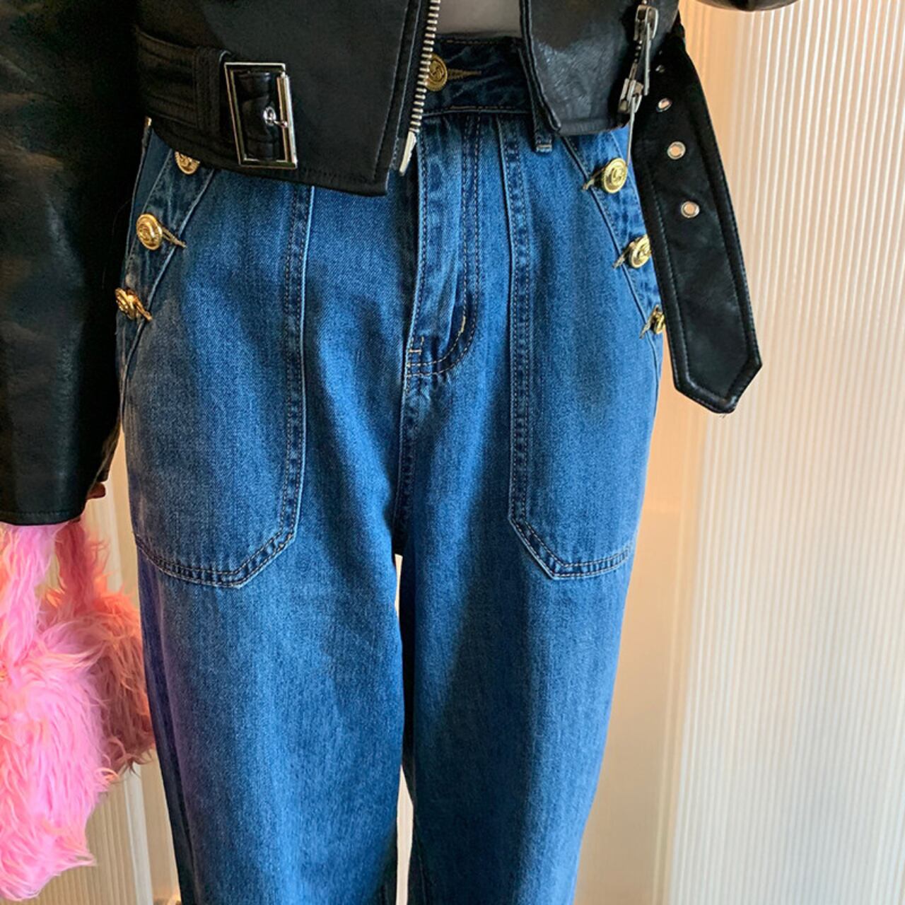 【発送について】 当ショップの商品は海外からのお取り寄せとなります。 ご注文後に仕入れを行うため、 発送まで1週間〜3週間ほどお時間をいただいております。 ーーーーーーーーーーーーーーーーーー テーパーどシルエットにハイウエストデザインが脚長効果を発揮し、スタイルアップを叶えます。 深めのポケットとゴールドボタンがアクセントになり、カジュアルながらもこなれ感を演出。 ■サイズ S 総丈:100.5cm ウエスト:64cm ヒップ:92cm M 総丈:102cm ウエスト:68cm ヒップ:96cm L 総丈:103.5cm ウエスト:72cm ヒップ:100cm 海外製品の為1〜3㎝誤差がある場合がございます。 MODEL / 163cm / 50kg / Mサイズ着用 ■カラー ONE ■素材 デニム素材 ◼️注意事項 ・こちらは輸入品となります。 日本製とは検品基準が異なる為、新品未使用品でも ごくわずかな汚れや傷がある場合もございます。 ・商品の色味は、お手持ちのデバイスの 画面によって実物と若干異なる場合がございます。 ———————————— ご購入前にこちらをお読みください → https://shop.maison-alea.com/about ————————————