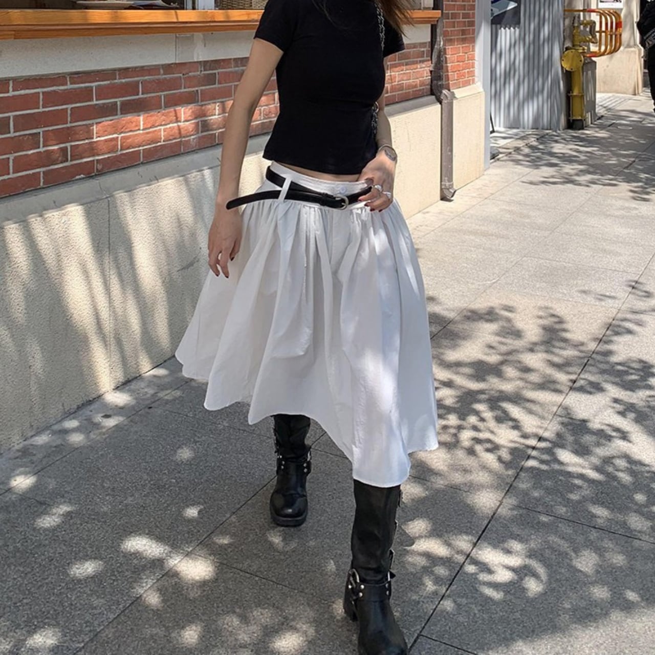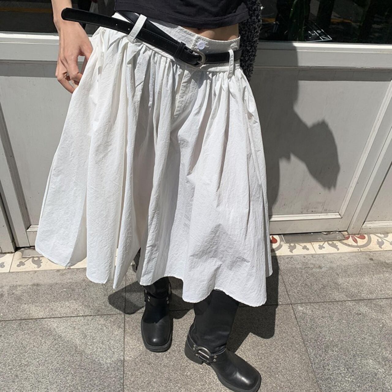 Belted Aline Gathered Midi Skirt W00143