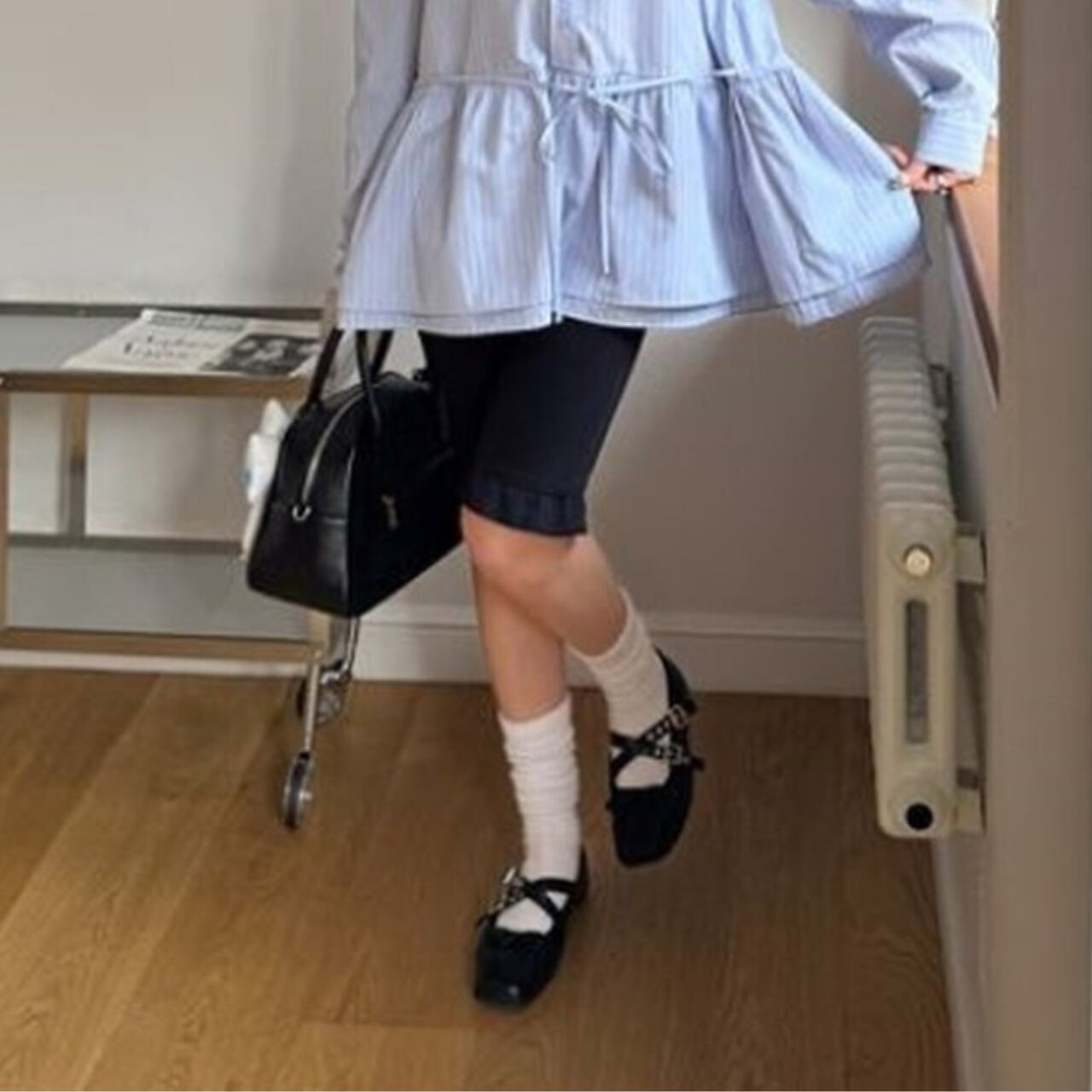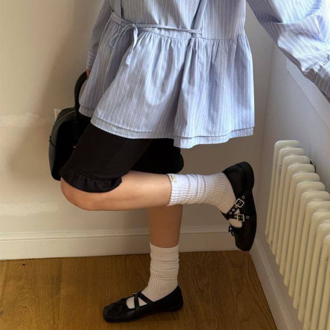 カジュアルなトップスと合わせて、甘さを抑えたミックススタイルもおすすめです。