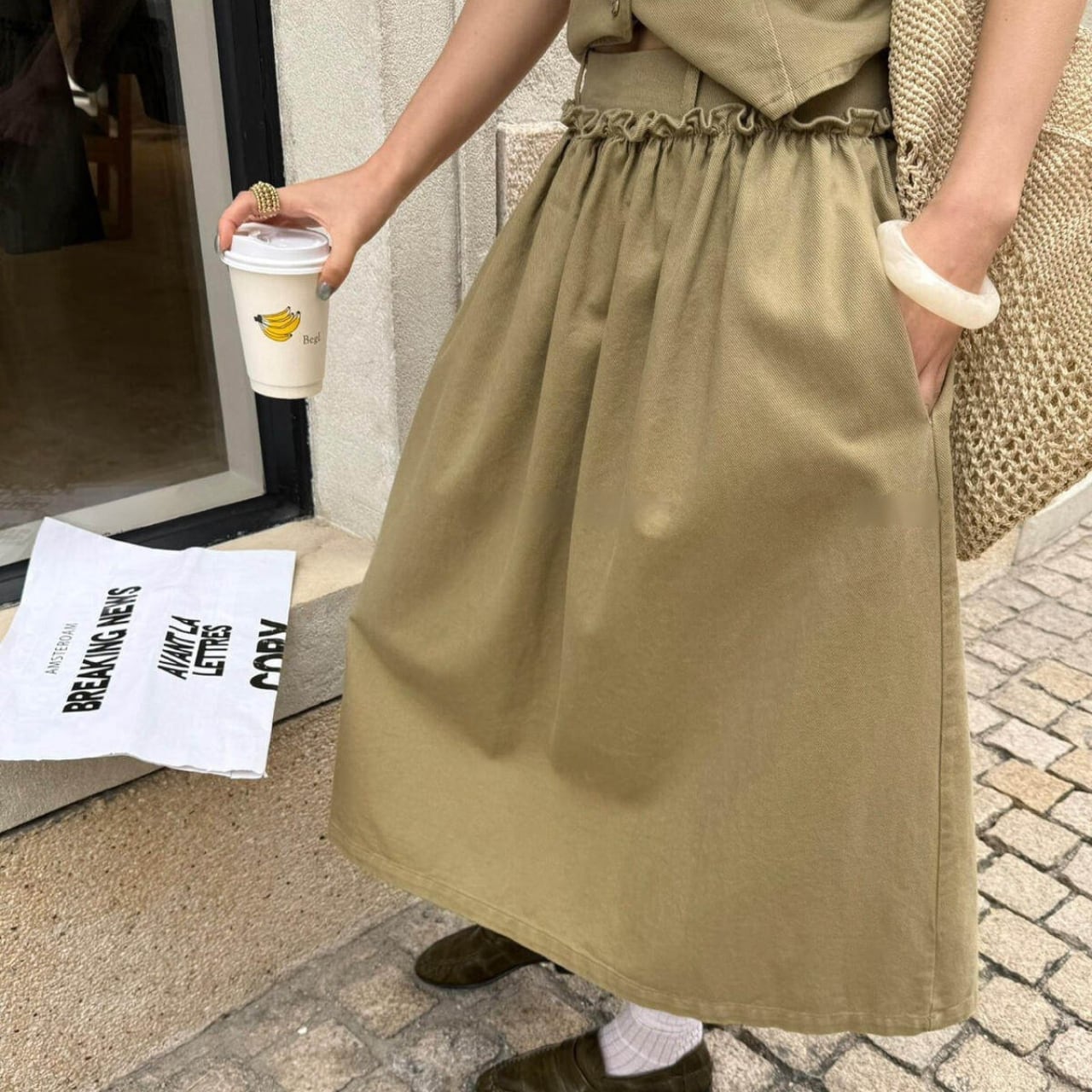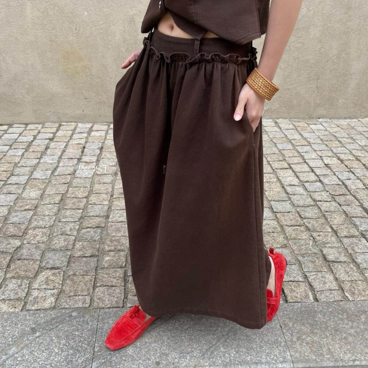 ウエストのフリルがポイントのAラインスカート。 動きやすく、普段使いに最適なアイテムです。 シンプルなデザインなので、様々なトップスに合わせやすく、着回し力も抜群です。 ■サイズ S ウエスト:68cm ヒップ:150cm スカート丈:82cm M ウエスト:74cm ヒップ:156cm スカート丈:83cm 海外製品の為1〜3㎝誤差がある場合がございます。 【発送について】 当ショップの商品は海外からのお取り寄せとなります。 ご注文後に仕入れを行うため、 発送まで1週間〜3週間ほどお時間をいただいております。 ーーーーーーーーーーーーーーーーーー ■カラー ベージュ ブラウン オフホワイト ■素材 コットン ◼️注意事項 ・こちらは輸入品となります。 日本製とは検品基準が異なる為、新品未使用品でも ごくわずかな汚れや傷がある場合もございます。 ・商品の色味は、お手持ちのデバイスの 画面によって実物と若干異なる場合がございます。 ———————————— ご購入前にこちらをお読みください → https://shop.maison-alea.com/about ————————————