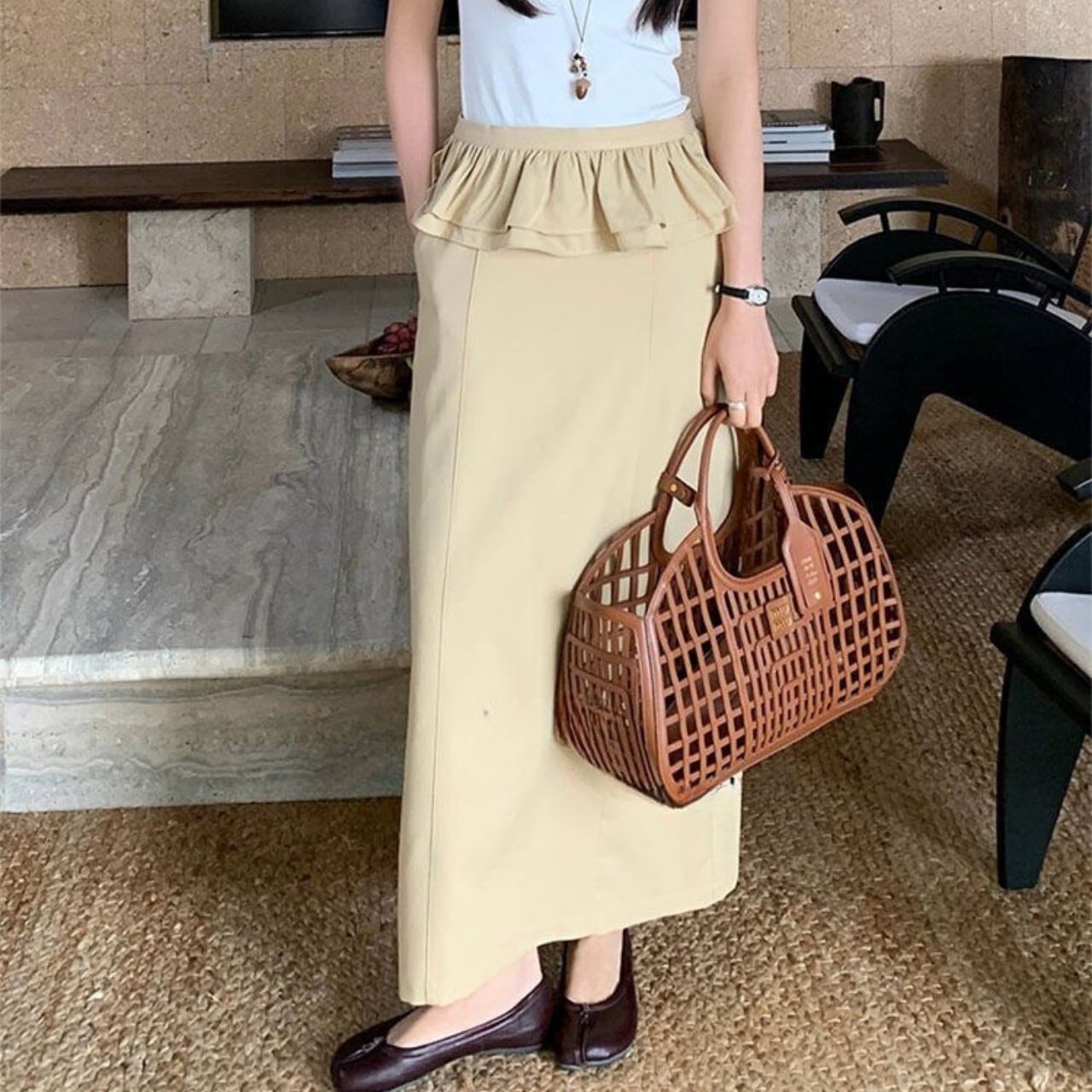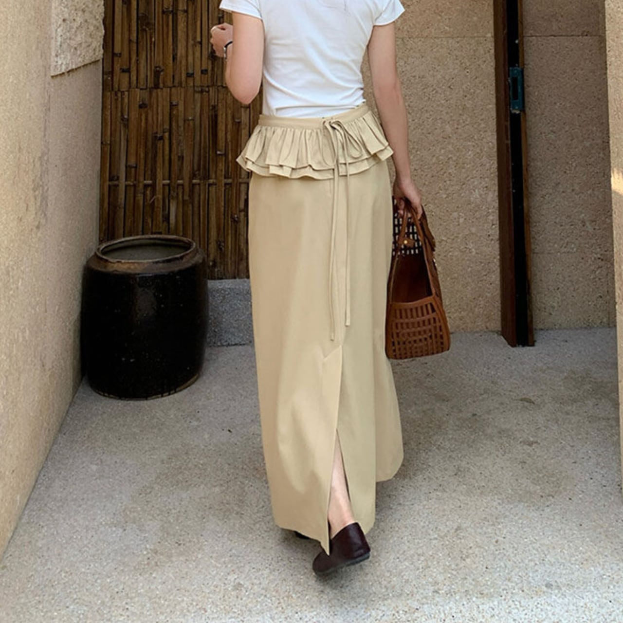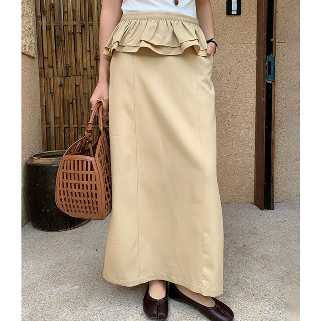 ウエストのフリルがポイントで、スタイルアップ効果も期待できます。 ウエストフリルは取り外し可能。 フリルを外してすっきりとした着こなしも楽しめる、 着回し力のあるアイテム。 ■サイズ S ウエスト:68cm ヒップ:93cm スカート丈:90cm M ウエスト:72cm ヒップ:97cm スカート丈:91cm L ウエスト:76cm ヒップ:101cm スカート丈:91cm 海外製品の為1〜3㎝誤差がある場合がございます。 【発送について】 当ショップの商品は海外からのお取り寄せとなります。 ご注文後に仕入れを行うため、 発送まで1週間〜3週間ほどお時間をいただいております。 ーーーーーーーーーーーーーーーーーー ■カラー ダークグレー ベージュ ■素材 ポリエステル79%、ビスコース18.4%、ポリウレタン2.6% ◼️注意事項 ・こちらは輸入品となります。 日本製とは検品基準が異なる為、新品未使用品でも ごくわずかな汚れや傷がある場合もございます。 ・商品の色味は、お手持ちのデバイスの 画面によって実物と若干異なる場合がございます。 ———————————— ご購入前にこちらをお読みください → https://shop.maison-alea.com/about ————————————
