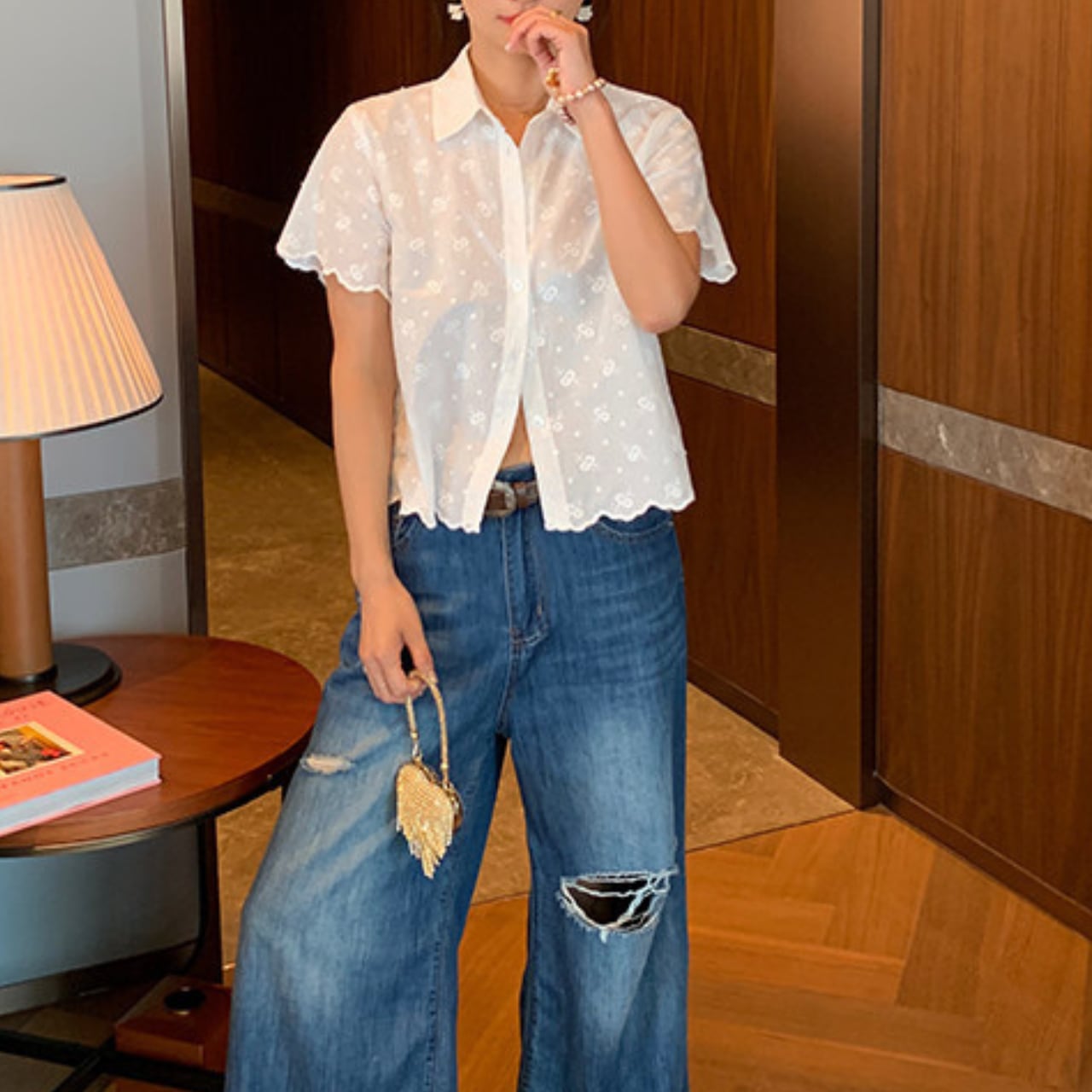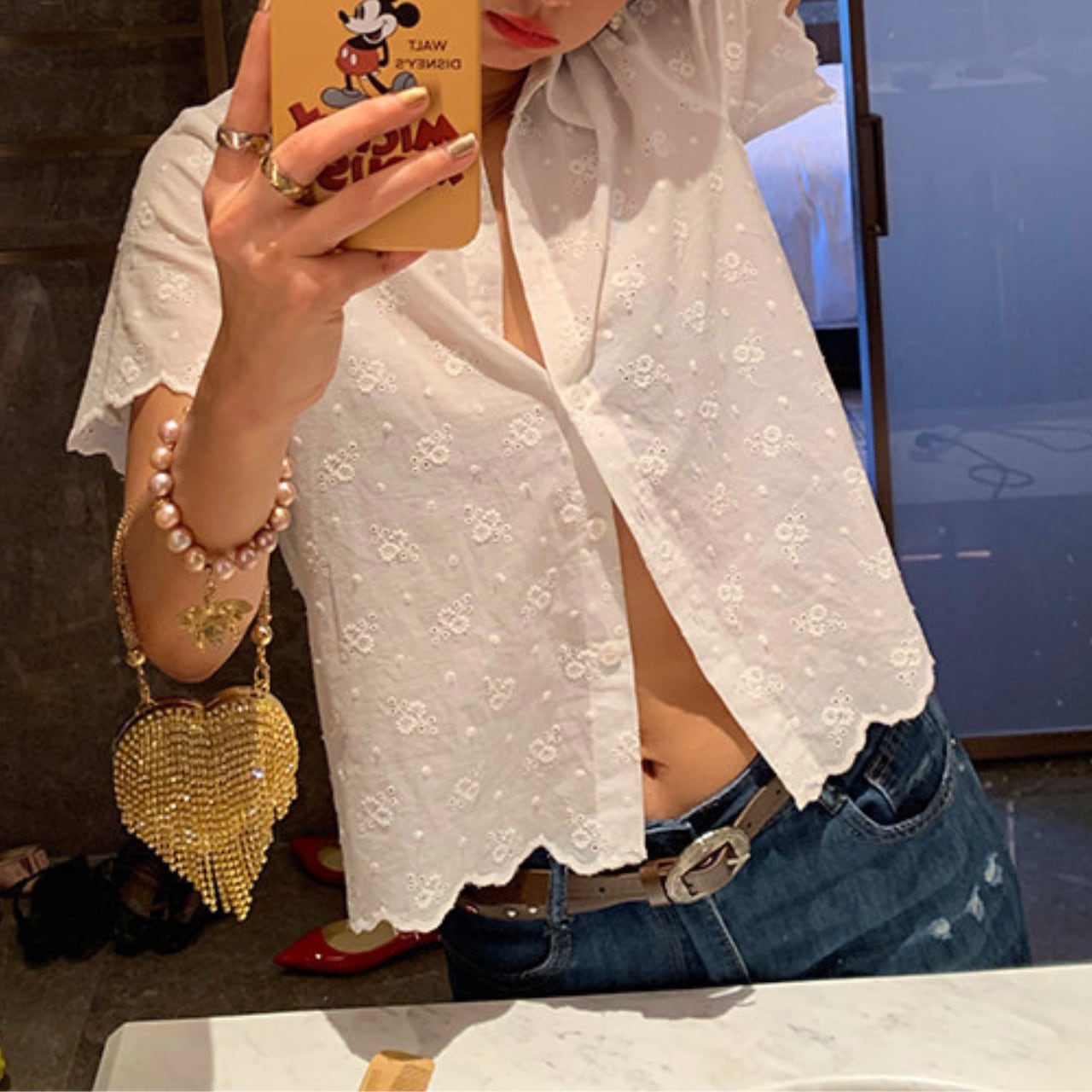 繊細なフローラルレースが目を引くシアーブラウス。 カジュアルなデニムスタイルにフェミニンな要素をプラスしたり、 スカートと合わせて上品な着こなしを楽しんだり、 様々なシーンで活躍します。 【発送について】 当ショップの商品は海外からのお取り寄せとなります。 ご注文後に仕入れを行うため、 発送まで1週間〜3週間ほどお時間をいただいております。 ーーーーーーーーーーーーーーーーーー ■サイズ S 肩幅:38cm 胸囲:96cm 着丈:53cm 袖丈:18.5cm M 肩幅:39cm 胸囲:100cm 着丈:54cm 袖丈:19.5cm L 肩幅:40cm 胸囲:104cm 着丈:55cm 袖丈:20.5cm 海外製品の為1〜3㎝誤差がある場合がございます。 MODEL / 163cm / 50kg / Mサイズ着用 ■カラー ONE ■素材 コットン ◼️注意事項 ・こちらは輸入品となります。 日本製とは検品基準が異なる為、新品未使用品でも ごくわずかな汚れや傷がある場合もございます。 ・商品の色味は、お手持ちのデバイスの 画面によって実物と若干異なる場合がございます。 ———————————— ご購入前にこちらをお読みください → https://shop.maison-alea.com/about ————————————