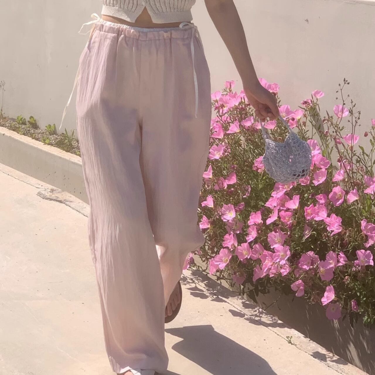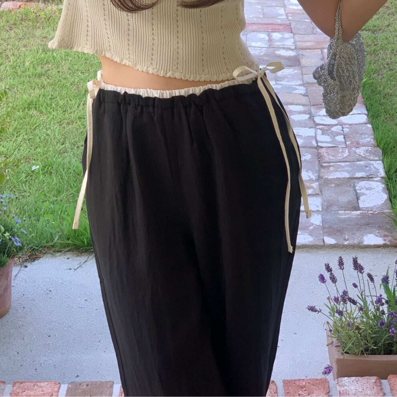サイドのリボンがポイントで、シンプルなコーディネートに華やかさをプラスします。