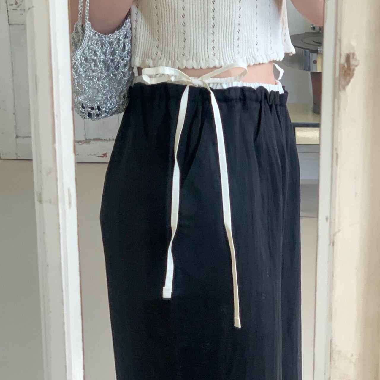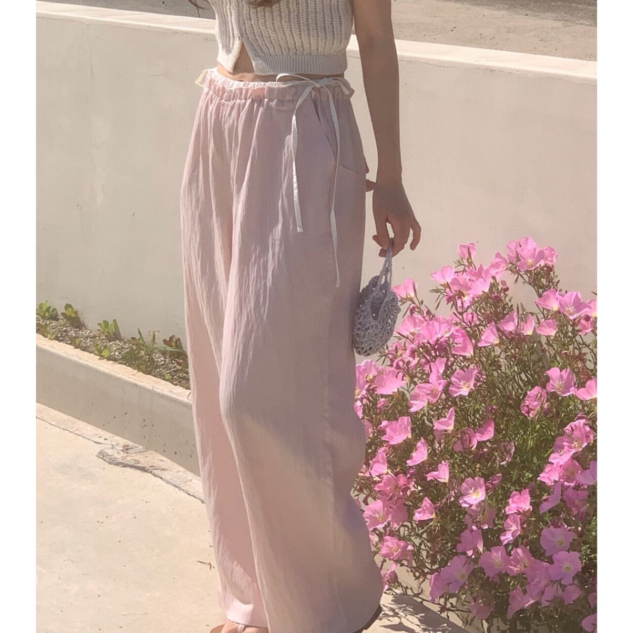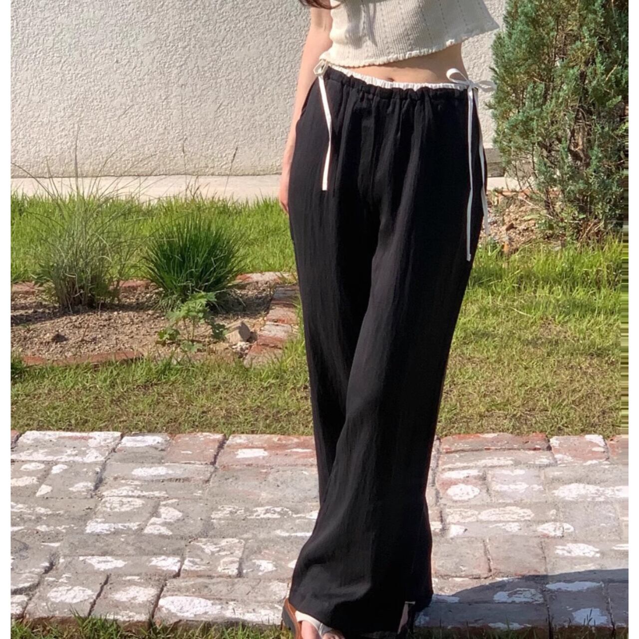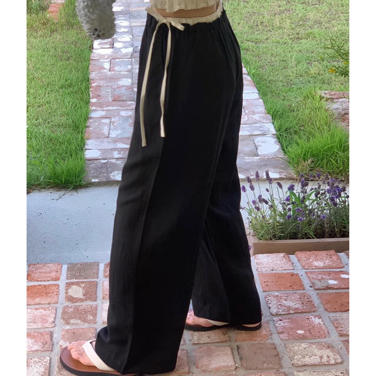 Side Ribbon Layered Wide Pants 2col W00197